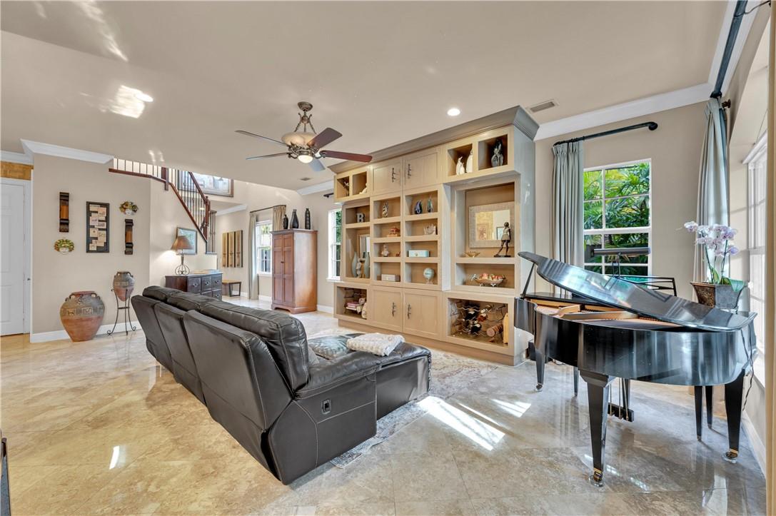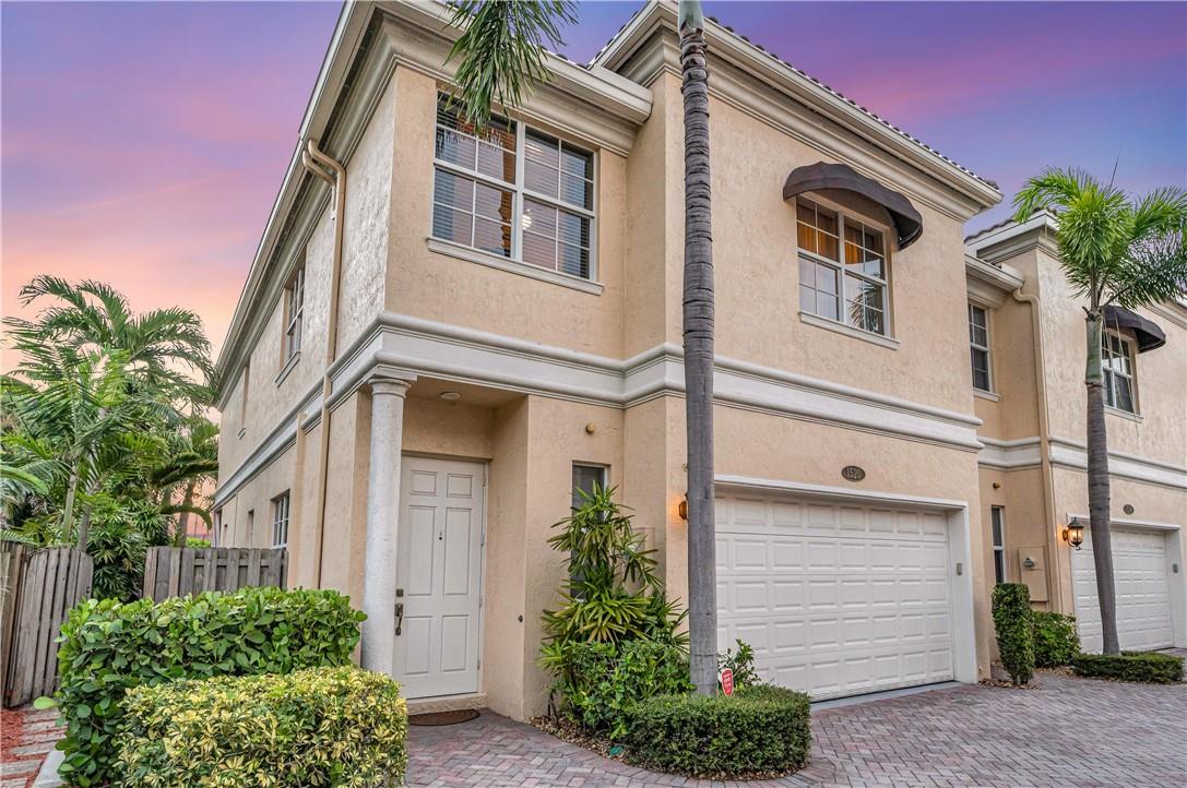 Here is a customized corner townhome in a gated, boutique community within Victoria Park. This 2,500+/- two story home includes exquisite custom built-ins, two bedrooms and an office loft (easily converted to a third bedroom), high ceilings, impact windows and doors, upgraded eat-in kitchen and an attached two car garage wired for an EV. Enter through a formal foyer into a brightly windowed living room. A formal dining room easily seats eight. The kitchen features island seating and an adjoining breakfast area. The large patio and gardens surround a heated, in-ground spa pool. Each bedroom has large, customized closets. This trim, eight-unit community is perfectly located near parks, theaters and fine grocery stores. The Beaches, Brightline Railway and Airport are within a few miles.