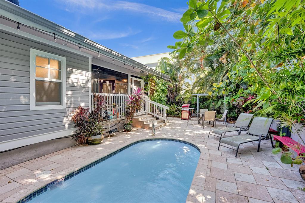 Come check out this beautiful Oasis in beautiful lush Victoria Park! 2/2 house with 1/1 Key West style cottage. Perfect for a relaxing lifestyle, living like you are on permanent vacation or rent it out as an Airbnb. You will be minutes away from shopping, restaurants and miles of beautiful golden beaches. Previously updated bathrooms and kitchen with granite countertops. House features paved patio, bicycle storage, screened porch, original pine floors a functional fireplace, impact windows with plantation shutters; what's not to love! Exterior features: 16' x 8' solar panels , lush landscaping, heated pool and a very private backyard. Come check it out! Showings start May 22, 2023