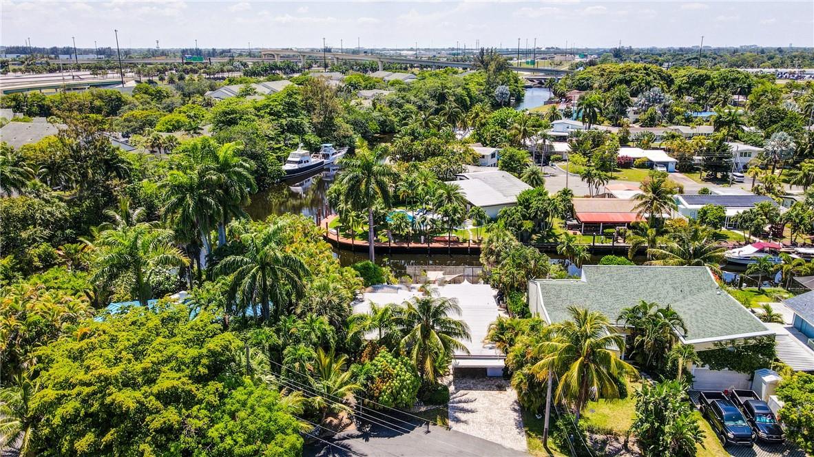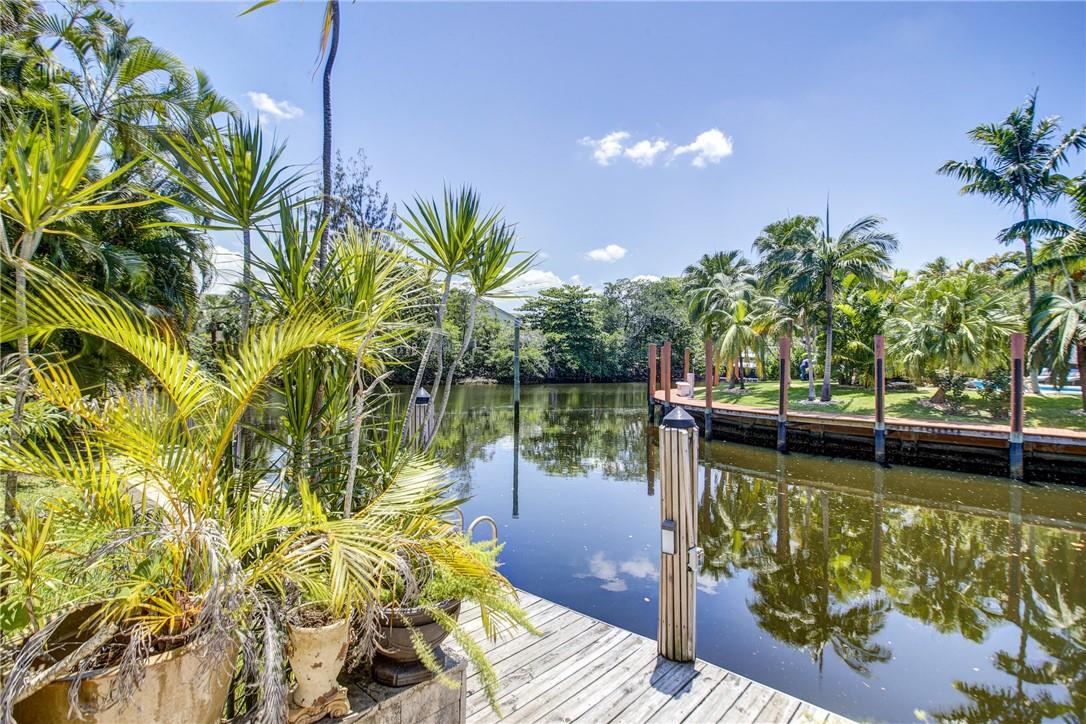 Welcome to the highly sought after Lauderdale Isles. This 2-bed, 2-bath gem is a coastal paradise, highlighting 95 feet of waterfront ocean access without any fixed bridges and a stunning river view. Its open, bright, and airy interior creates a welcoming atmosphere. The pool area features a bar and seating area, ideal for entertaining, south side yard sports a bocce court, while the private dock invites you to explore the waterways at your leisure. Inside features charming terrazzo floors and cedar ceilings. Conveniently located close to major highways, roads, shopping, entertainment, and much more, this home offers convenience and elegance in one. Any / all measurements are estimates and should be verified by the buyer. SURVEY ATTACHED.