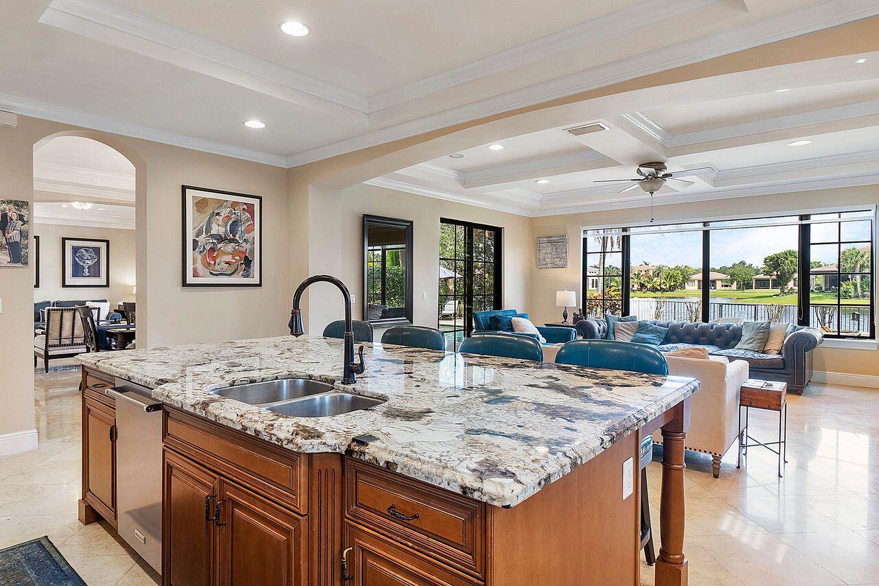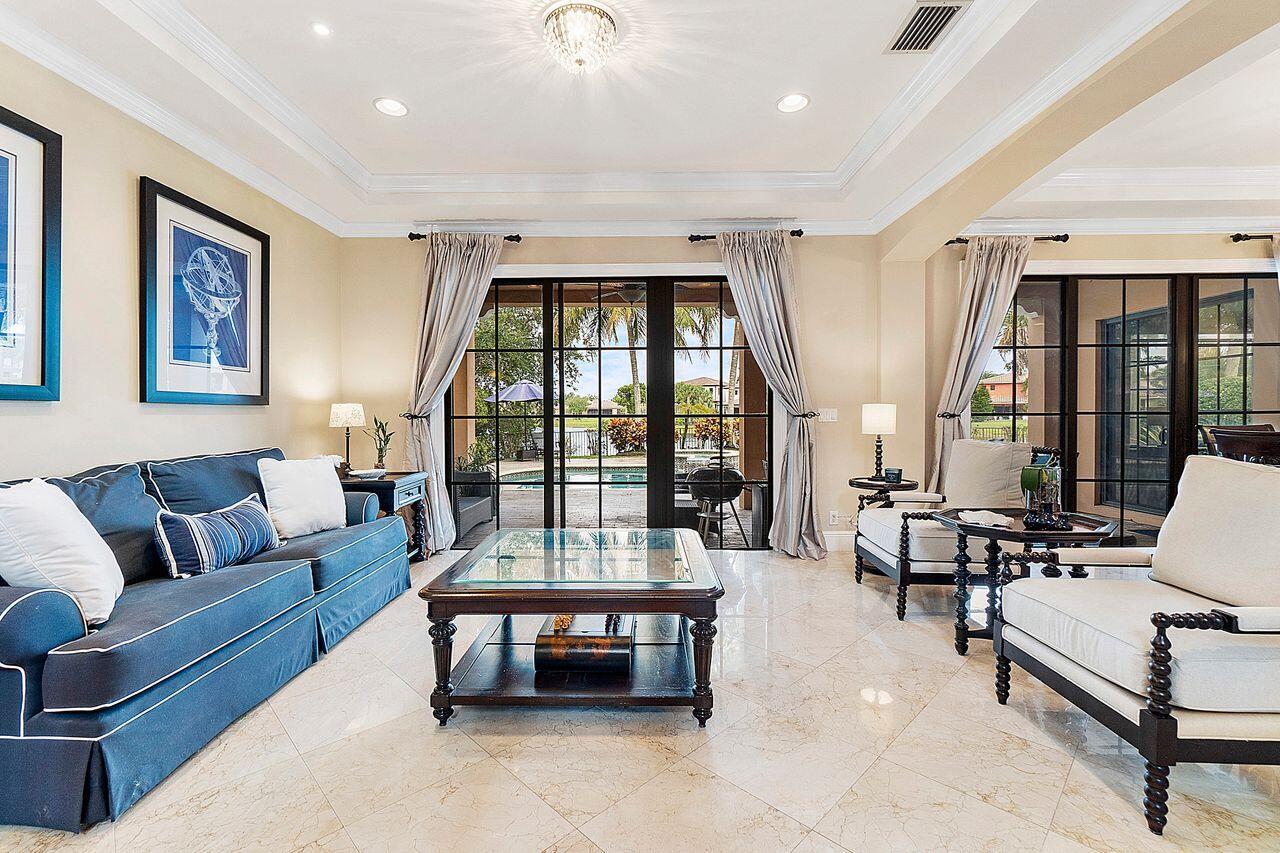 Welcome to this stunning Mediterranean estate home nestled within the guard gated golf community of Parkland Golf and Country Club. Perfectly situated on a serene water lot with 5 bedrooms, 4 bathrooms, a 3 car garage and a pool, this home is the perfect blend of elegance and comfort. Upon entering the grand two story foyer you'll be immediately captivated by the spaciousness, high ceilings and water views from every window. Marble floors flow throughout the main level, complementing the neutral color palette and allowing natural light to illuminate the living spaces. The open floor plan seamlessly connects the formal living and dining areas creating an inviting space for gatherings and special occasions.Not to be missed is the gourmet kitchen equipped with stainless steel applia