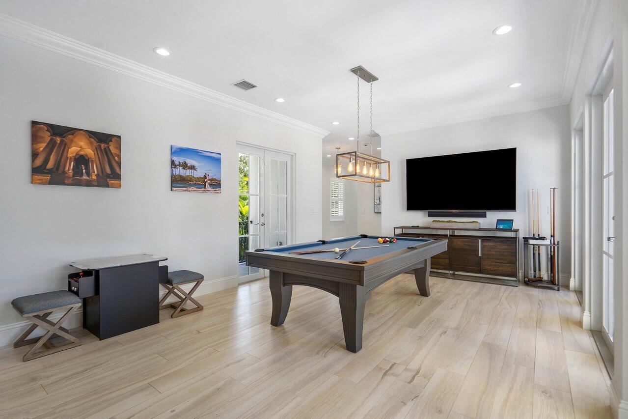 Nestled in the historic neighborhood of Old Floresta, this 2017 constructed Spanish-Colonial inspired estate boasts stunning architectural design surrounded by beautiful Pink Silk Floss trees and well-kept gardens. With 6 bedrooms and over 7,000 square feet under roof, this palatial residence offers complete privacy on sprawling grounds adorned with mature areca palms. The spacious living areas feature Italian porcelain flooring, chic chandeliers, crown molding, and volume ceilings. The high impact windows and doors allow natural light to flood the home. The gourmet kitchen features stainless steel Wolf appliances, an 11-foot island, and an airy breakfast room overlooking the lanai. The luxurious master suite, situated on the first floor for added privacy, features duel water closets...