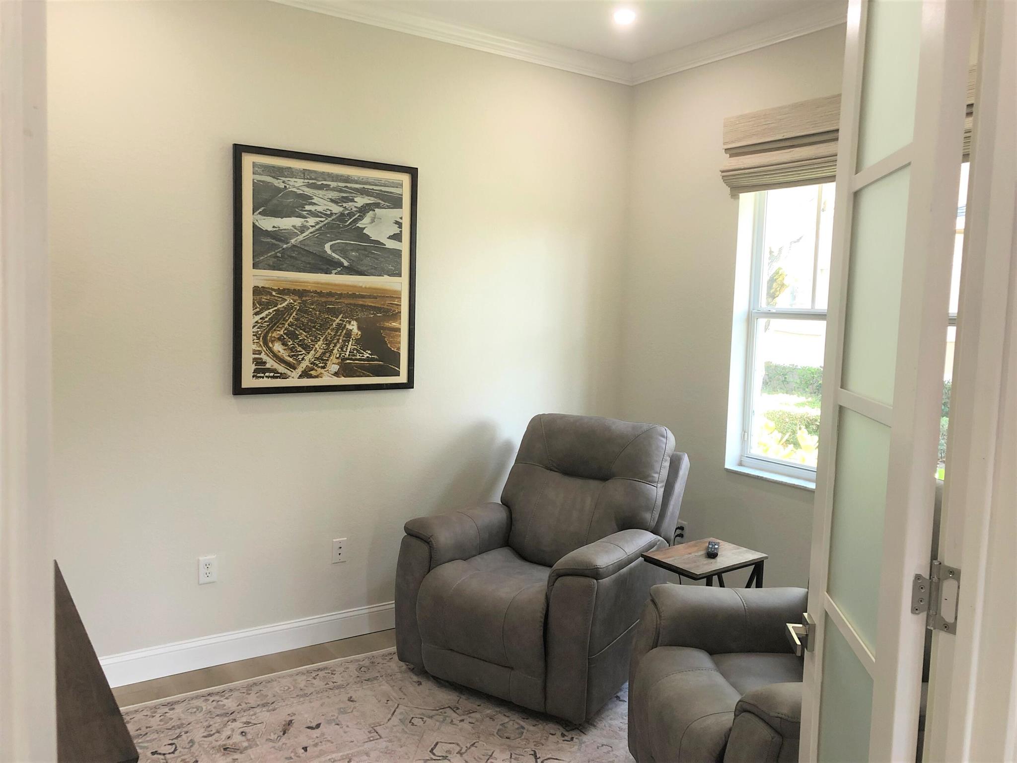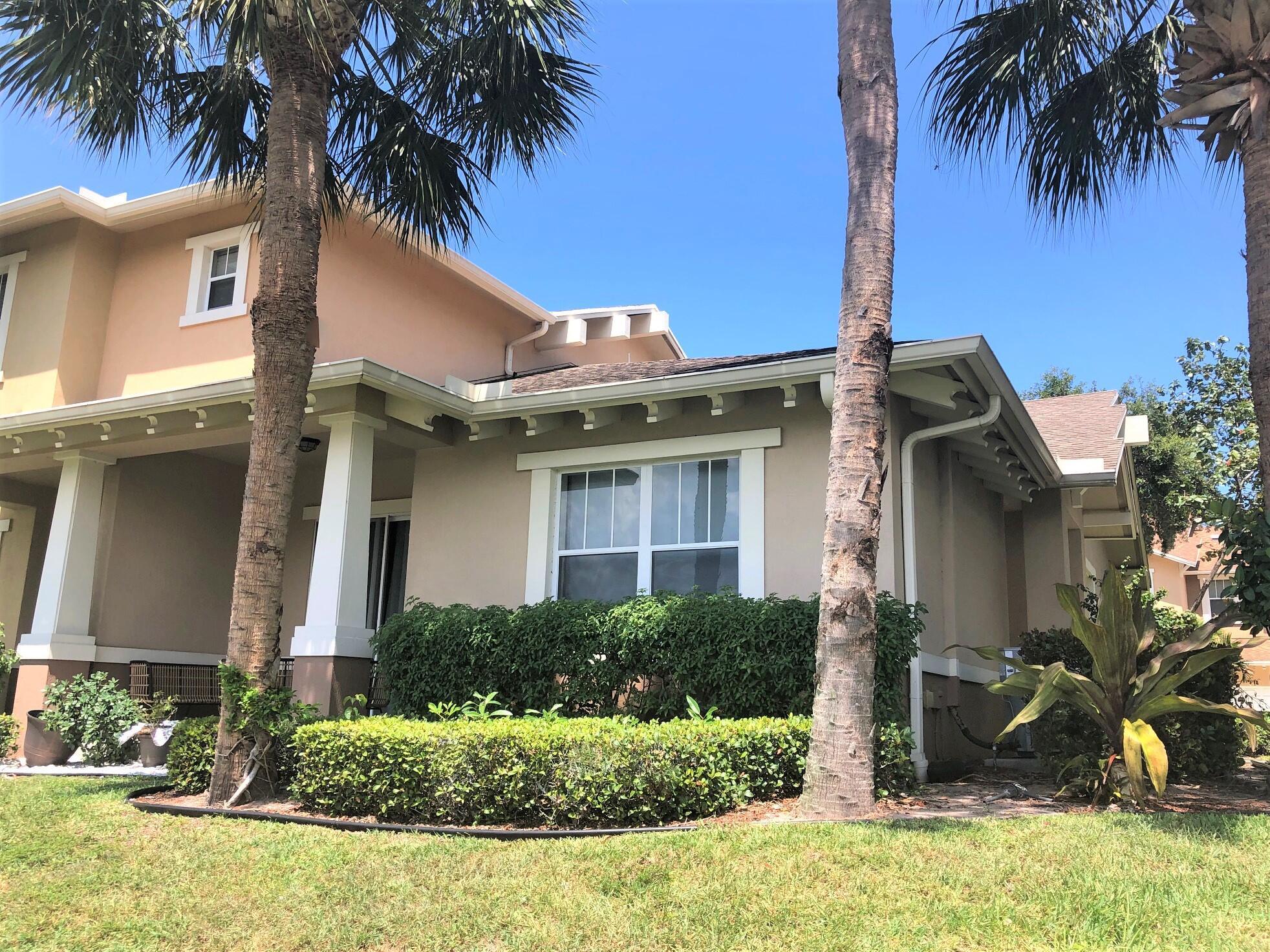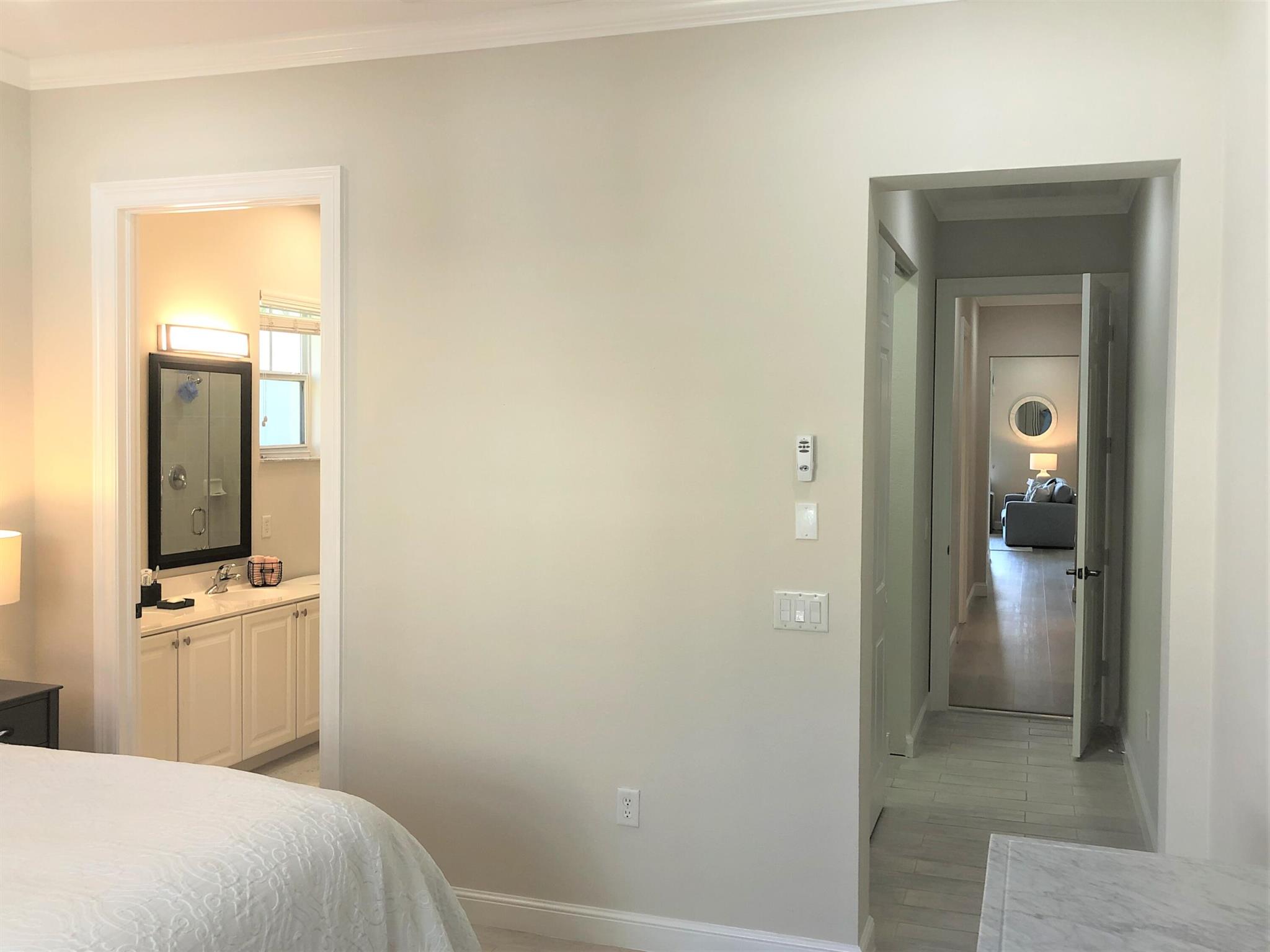 RARE!! Enjoy sunsets over the water from your patio in this ranch-style Santa Barbara lakeside model. Updated private corner unit. New floors & recessed lighting throughout. Kitchen features granite counters with GE Slate appliances, beautiful subway tile backsplash and 42'' cabinets. This tastefully appointed townhome is awash in natural light with soaring 10ft ceilings & inviting neutral tones to compliment. Primary suite features dual vanity sinks and spacious walk-in closet with plenty of shelving & storage. 3rd bedroom converted to den / office. Great location! A hidden gem only 5 minutes from downtown, I-95 & PBIA. Walking distance to the the new Outlet Shoppes, Whole Foods, Target and several restaurants. Community amenities include high speed wifi & cable service, water,
