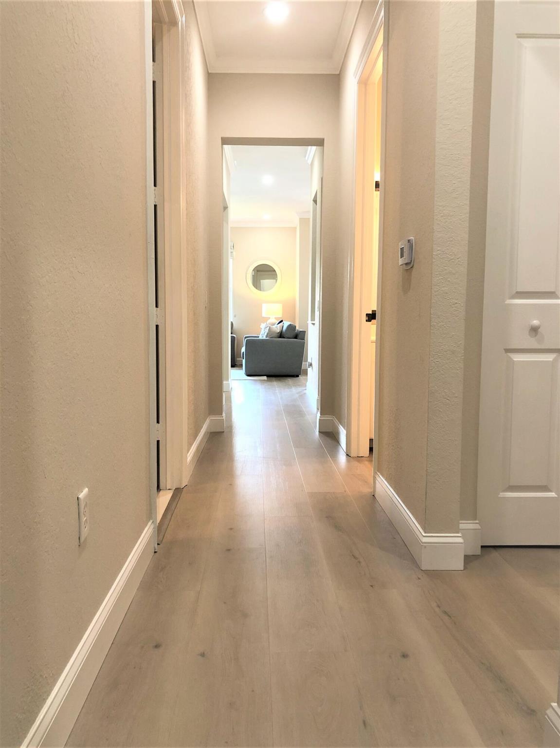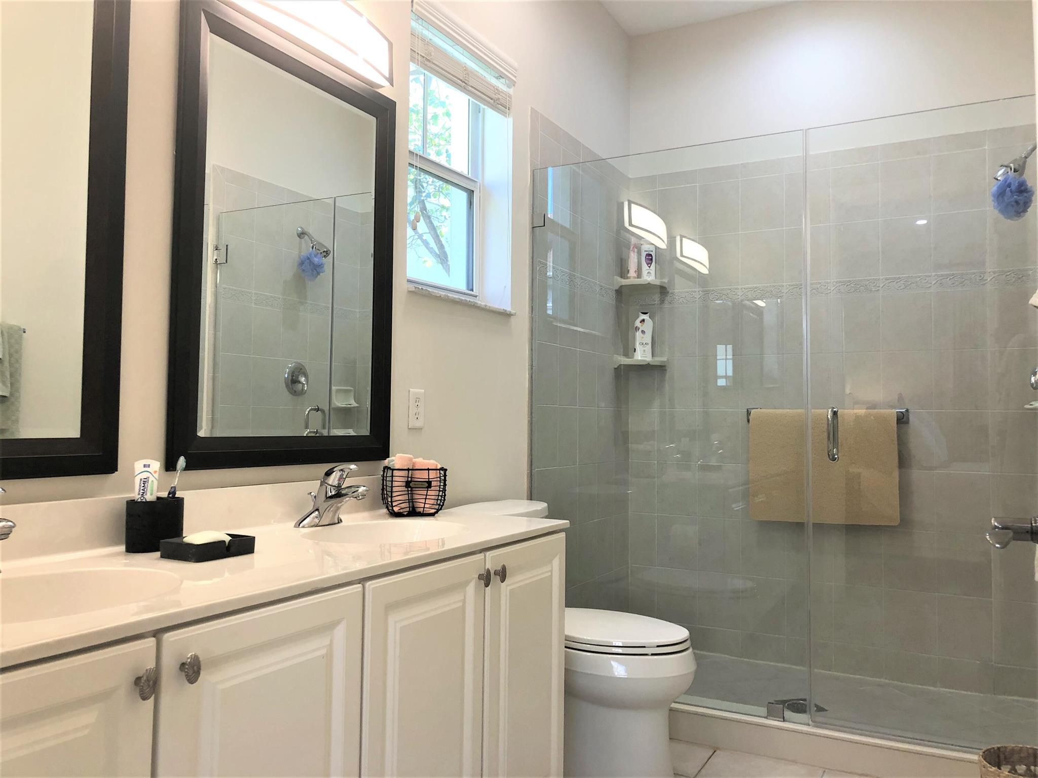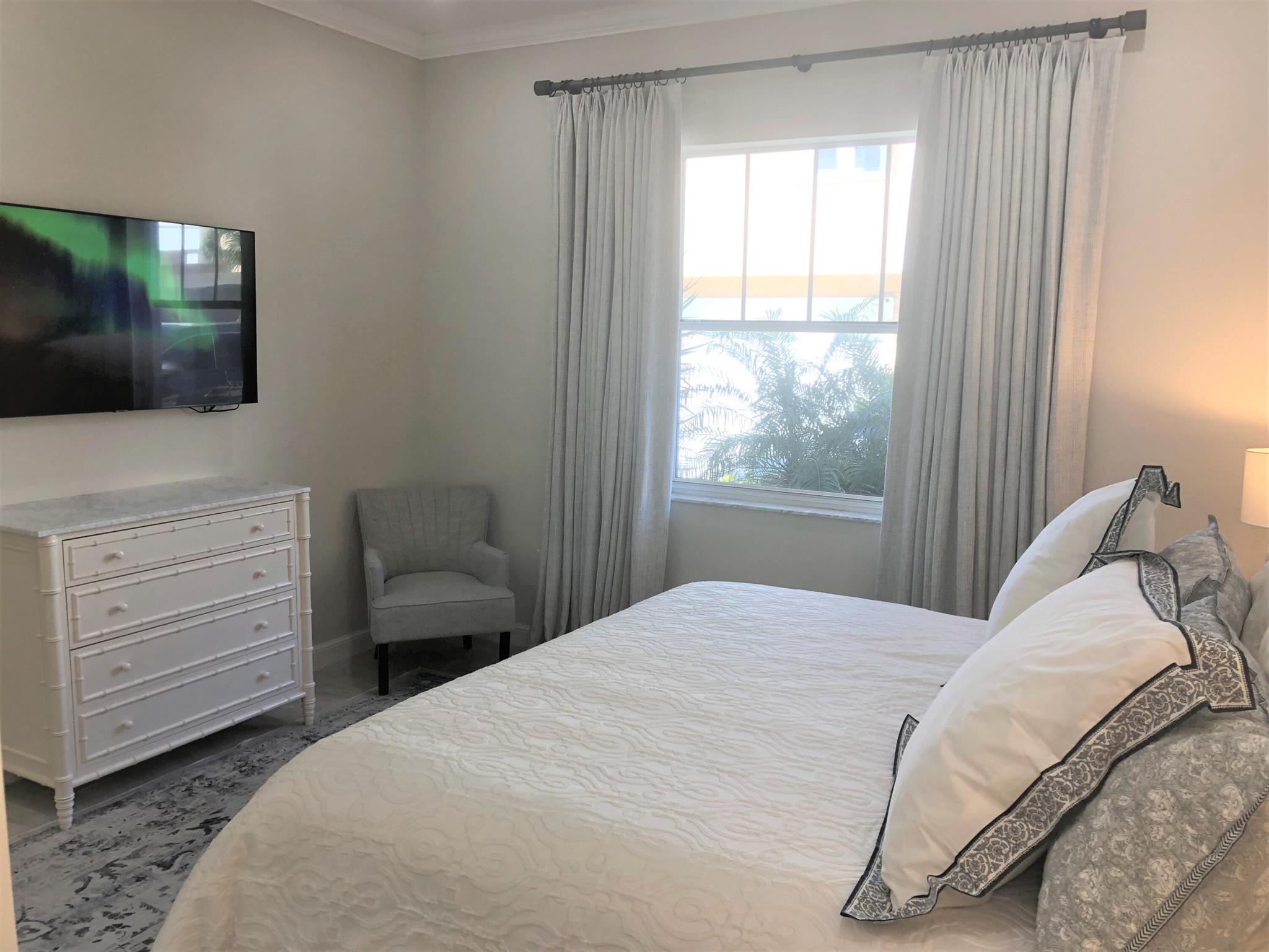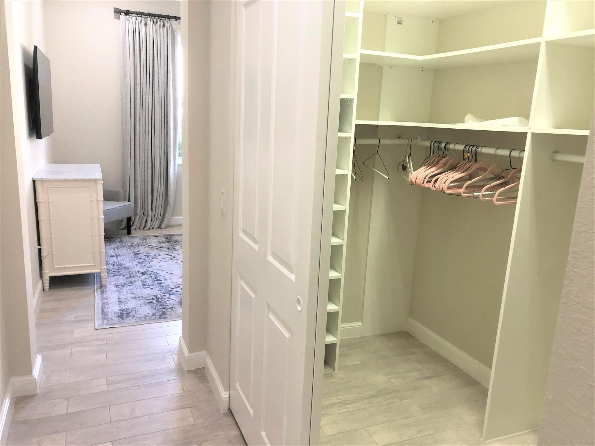 RARE!! Enjoy sunsets over the water from your patio in this ranch-style Santa Barbara lakeside model. Updated private corner unit. New floors & recessed lighting throughout. Kitchen features granite counters with GE Slate appliances, beautiful subway tile backsplash and 42'' cabinets. This tastefully appointed townhome is awash in natural light with soaring 10ft ceilings & inviting neutral tones to compliment. Primary suite features dual vanity sinks and spacious walk-in closet with plenty of shelving & storage. 3rd bedroom converted to den / office. Great location! A hidden gem only 5 minutes from downtown, I-95 & PBIA. Walking distance to the the new Outlet Shoppes, Whole Foods, Target and several restaurants. Community amenities include high speed wifi & cable service, water,