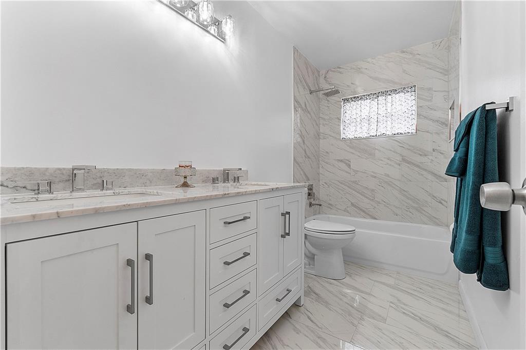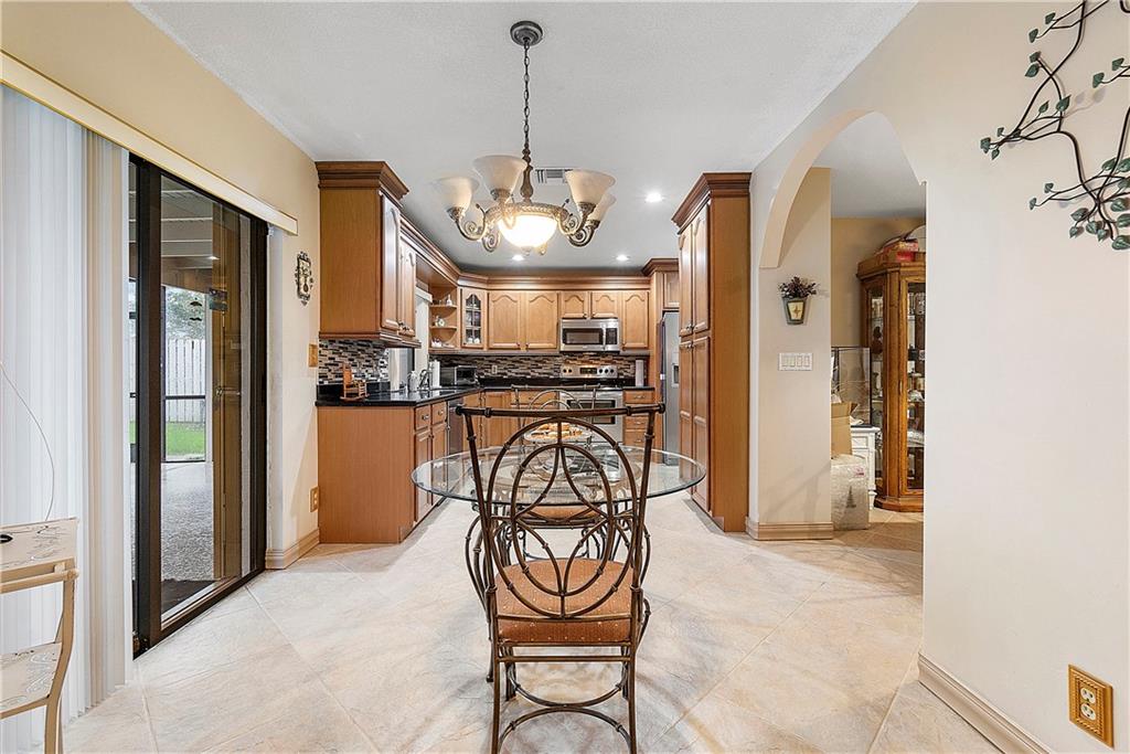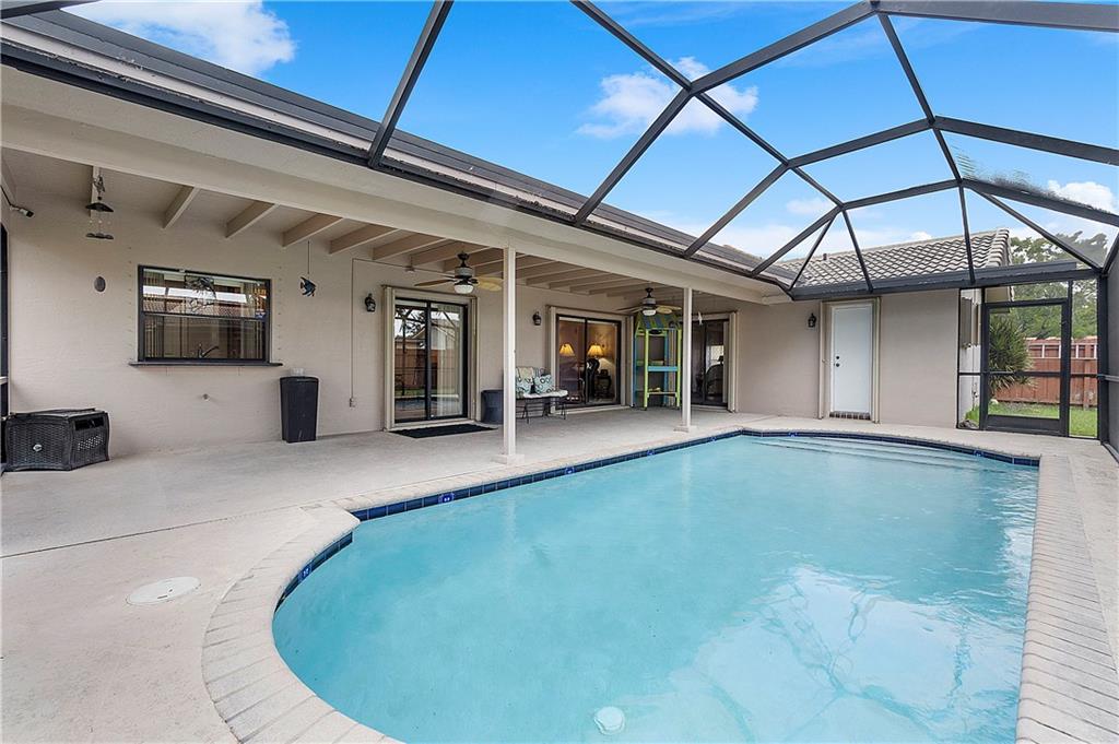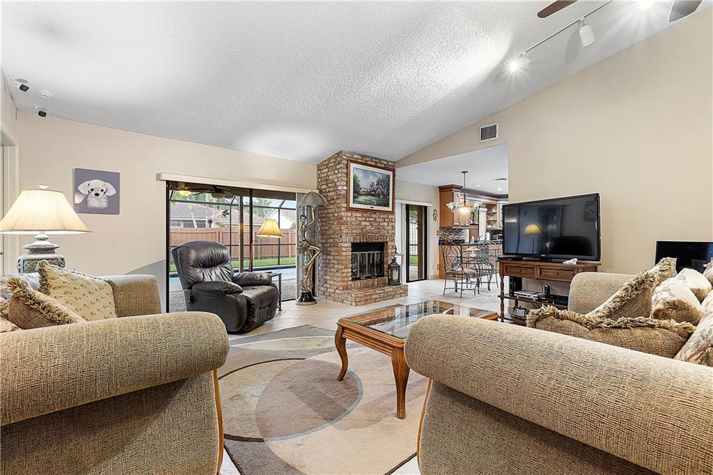 Beautifully Updated 4 BR/2 BA Home with Screened Pool & Fenced Back Yard! New Primary Bath 2022 & Guest Bathroom 2023. Kitchen Updated, 2017, with Custom Wood Cabinetry, Granite Countertops, Glass Tile Backsplash & SS Appliances. Cabinets offer Lazy Susan, Soft Close Drawers & Deep Pantry with Pull Out Shelves. Neutral Tile installed 2017 throughout Living Area & New LVP Floors in Bedrooms 2023. Open & Flexible Floor Plan with Vaulted Ceilings. Split Stack Bedroom Plan. Wood Burning Fireplace. Interior Laundry Room includes Washer/Dryer & Cabinets/Shelves for extra Storage. Laundry Room w/door opens to side yard. Accordion Hurricane Shutters except panels for pass through window in Kitchen. Spacious Covered Patio w/Cool Deck. Screen Pool w/Diamond Brite finish. Walk to Cypress Park.
