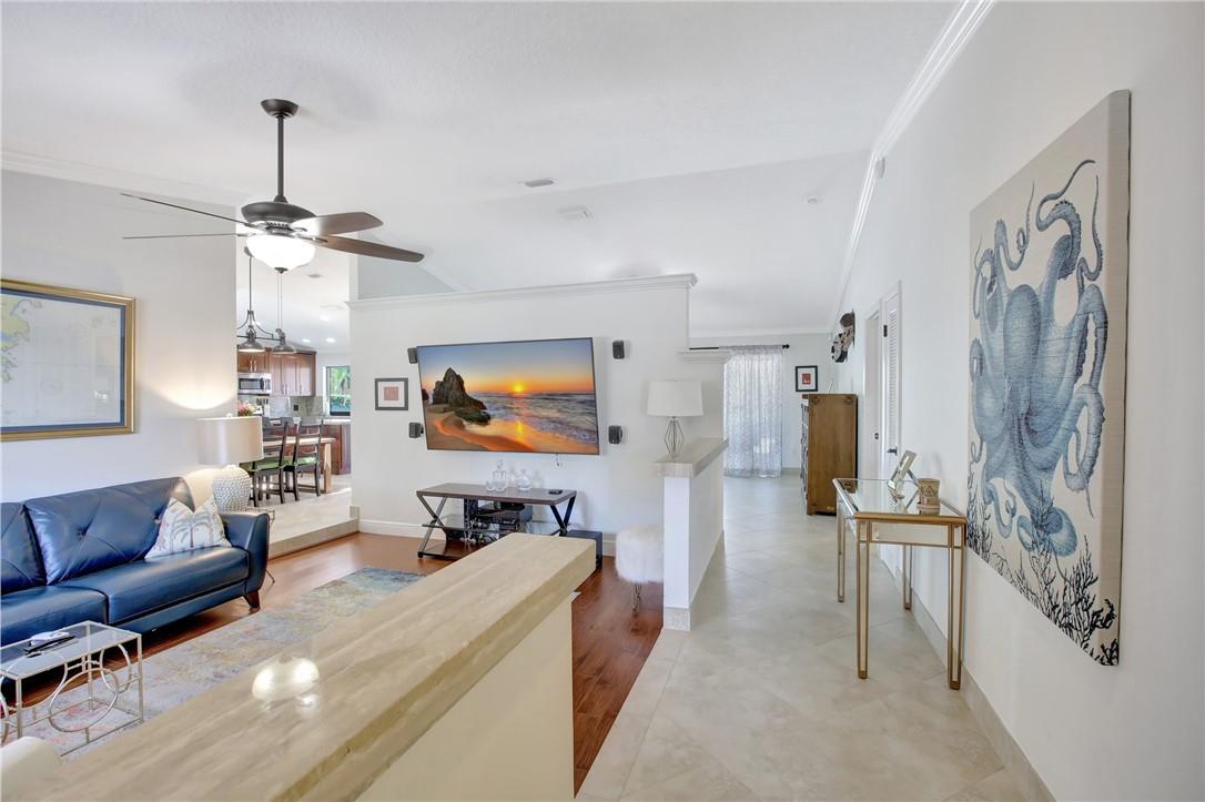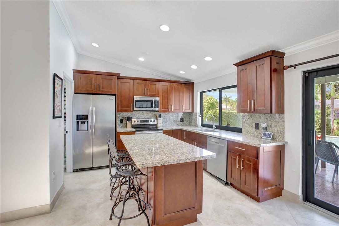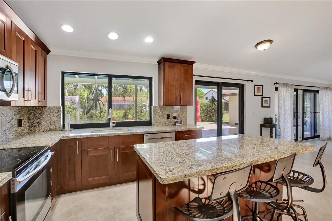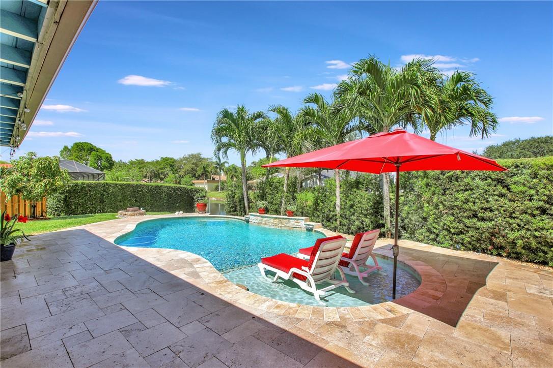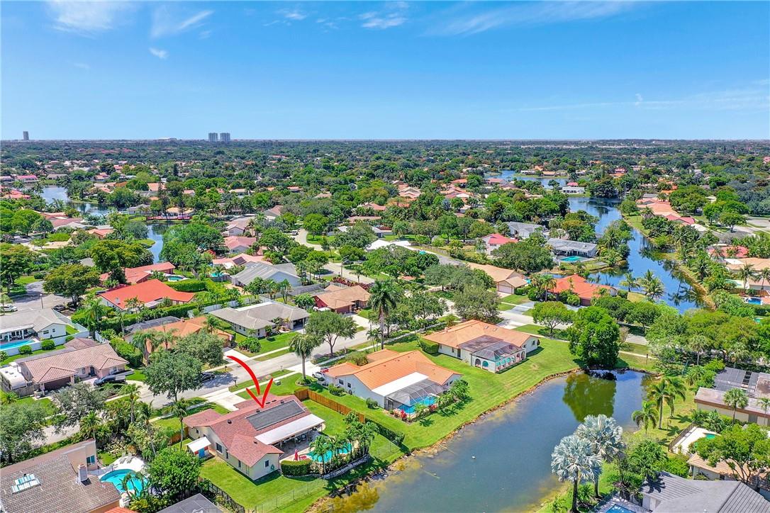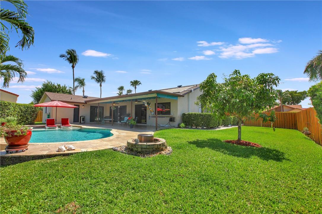 You Can Stop Looking Now!!! This is the Move-In Ready & Substantially Remodeled 4 bed 2 bath Home that you've been waiting for. Located in the Exclusive Community of Jacaranda Lakes, this Incredible Home is situated on an Over-Sized Lot facing a Canal. Every Detail Upgraded in Recent Years, including a New 2023 Roof, 2021 AC, Crown Moldings, Custom Paint, Flooring, Custom Cabinetry, and High-end Counter Tops in the Kitchen and both Baths. All Windows and All Doors are Impact Rated. The Salt and Solar Heated Pool is Akin to a Tropical Oasis, Complete with its Own Sun Shelf & Waterfall. Surrounded by Lush Landscaping & Beautiful Palm Trees Offering Exceptional Privacy. There is even a Kids Playhouse (or Greenhouse) as well as a Fully Functional Two-Car Garage with its Own Self-Contained AC!