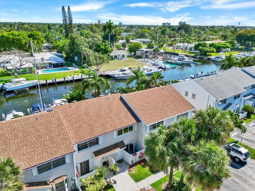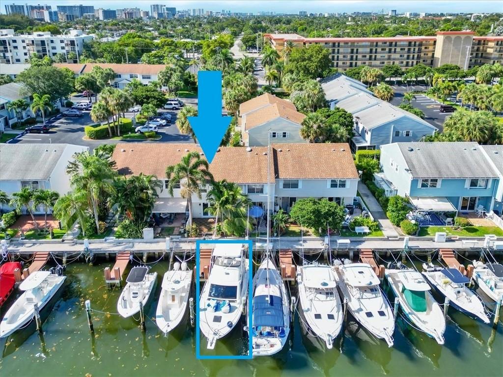 DEEDED DOCK (slip 62) adjacent patio available at $145,000. Ten minutes to Hillsboro inlet. See your boat from your sofa and large shaded patio with palm trees. Boater’s paradise in a quiet, friendly boating community tucked away on a scenic canal. Only 3 minutes from the beach. Less than half a mile to Alsdorf Park Public Boat Launch. Two bedrooms upstairs each with its own en suite bathroom. Half bath downstairs. Full-size washer and dryer upstairs. New AC 2021. New impact windows and doors 2023. One deeded parking space (207), plus ample guest parking. Low monthly HOA dues $200/mo (includes landscaping and water/sewer/trash). Community swimming pool. Dock is on a separate deed from townhome (slip fee $170/QTR). Easy to show! Currently empty with SUPRA box (front fence).