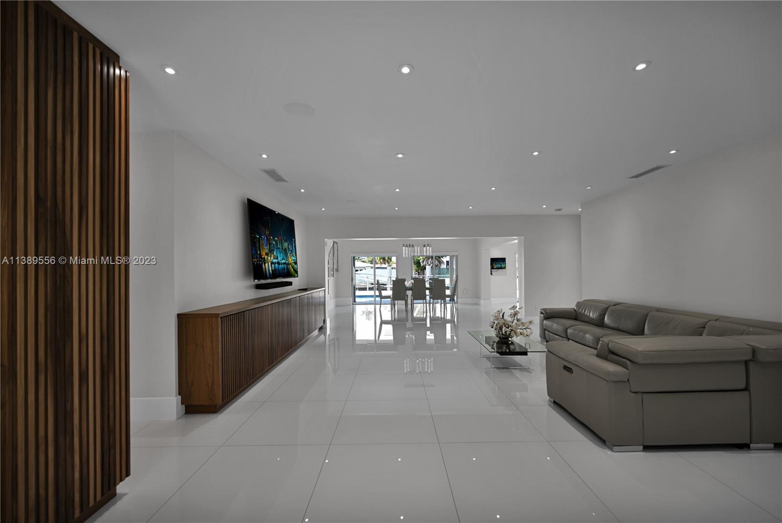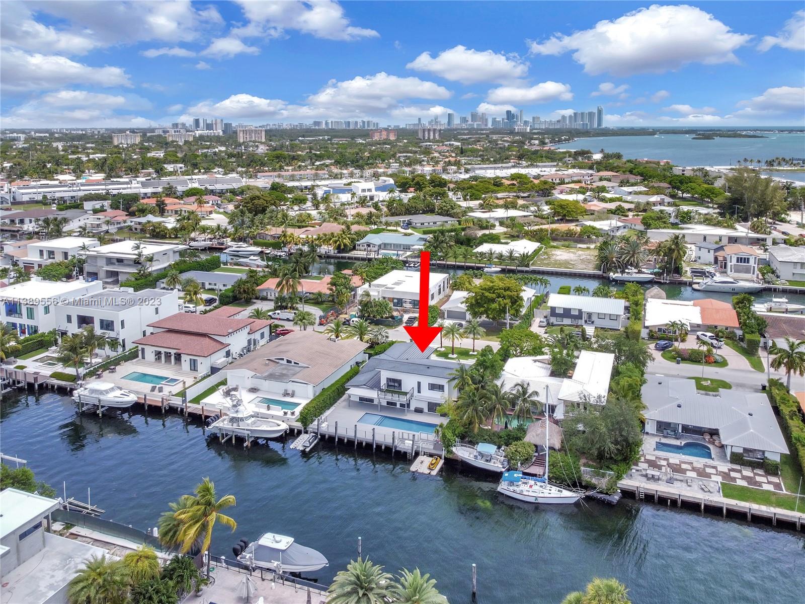 Welcome to an exquisite waterfront home in the prestigious San Souci Estates. This residence offers direct bay/ocean access, perfect for water enthusiasts. The open floor plan exudes grandeur with six bedrooms and bathrooms for privacy. The gourmet kitchen overlooks the living room and offers stunning water views. Outside, enjoy a heated pool, private dock boasting over 75 feet , and jet ski spaces. Parking is easy with a two-car garage and four-car driveway. The community is safeguarded by the 24-hour North Miami Patrol, and a tennis court center is conveniently located nearby. With wide bay views and over 3800 sq. ft., this attractively priced home is a prime choice.