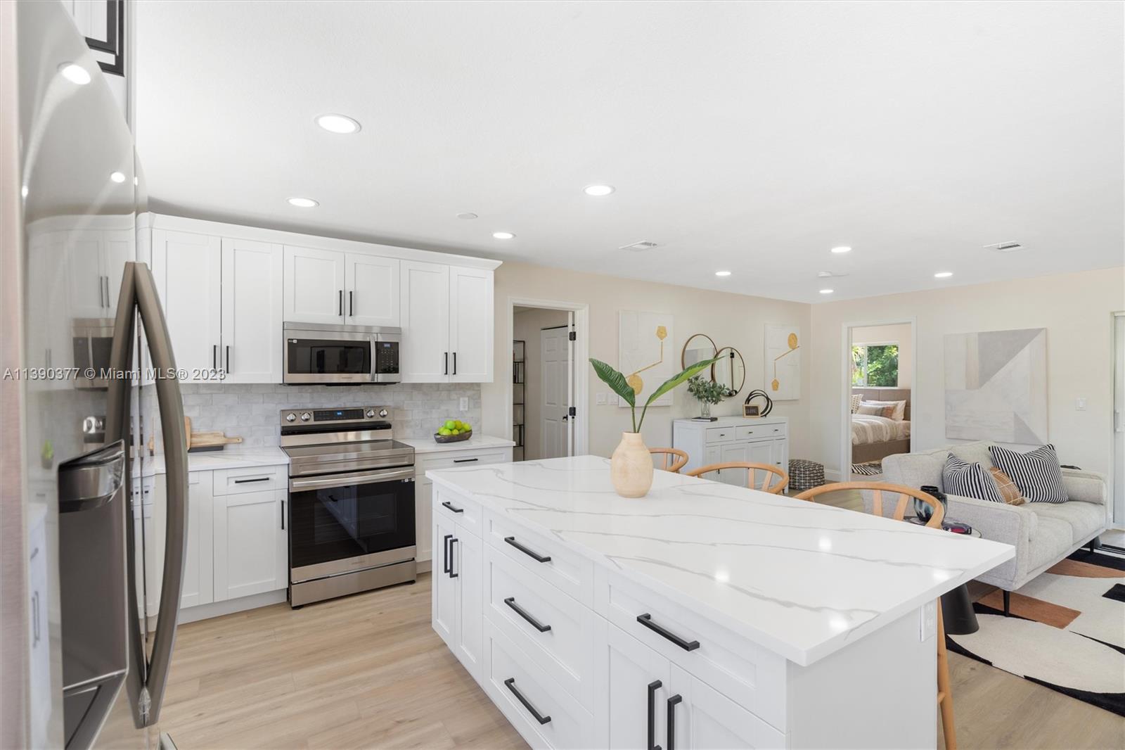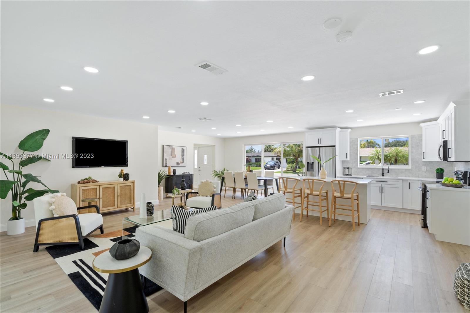 Welcome to this stunning, fully renovated home on a delightful tree-lined street in Hollywood Hills! This exceptional 3 bedroom, 2 bath property boasts a unique feature that sets it apart from the rest; The highly coveted 500+ sqft detached garage, which can be transformed into an in-law suite, a home gym, or even a playroom for children.The home has a well-designed floor plan w/ an open-concept kitchen with quartz countertops & brand new appliances. In addition, brand NEW impact windows throughout, a den/office that can be used as a 4th bedroom w/ a side entrance, a master suite w/ walk-in closet, a COVERED patio, full sprinkler system, and more. Plenty of room for a boat/RV. NO HOA. Just 4 miles from the beach and minutes away from highway access, great schools. THIS IS A MUST-SEE HOUSE.