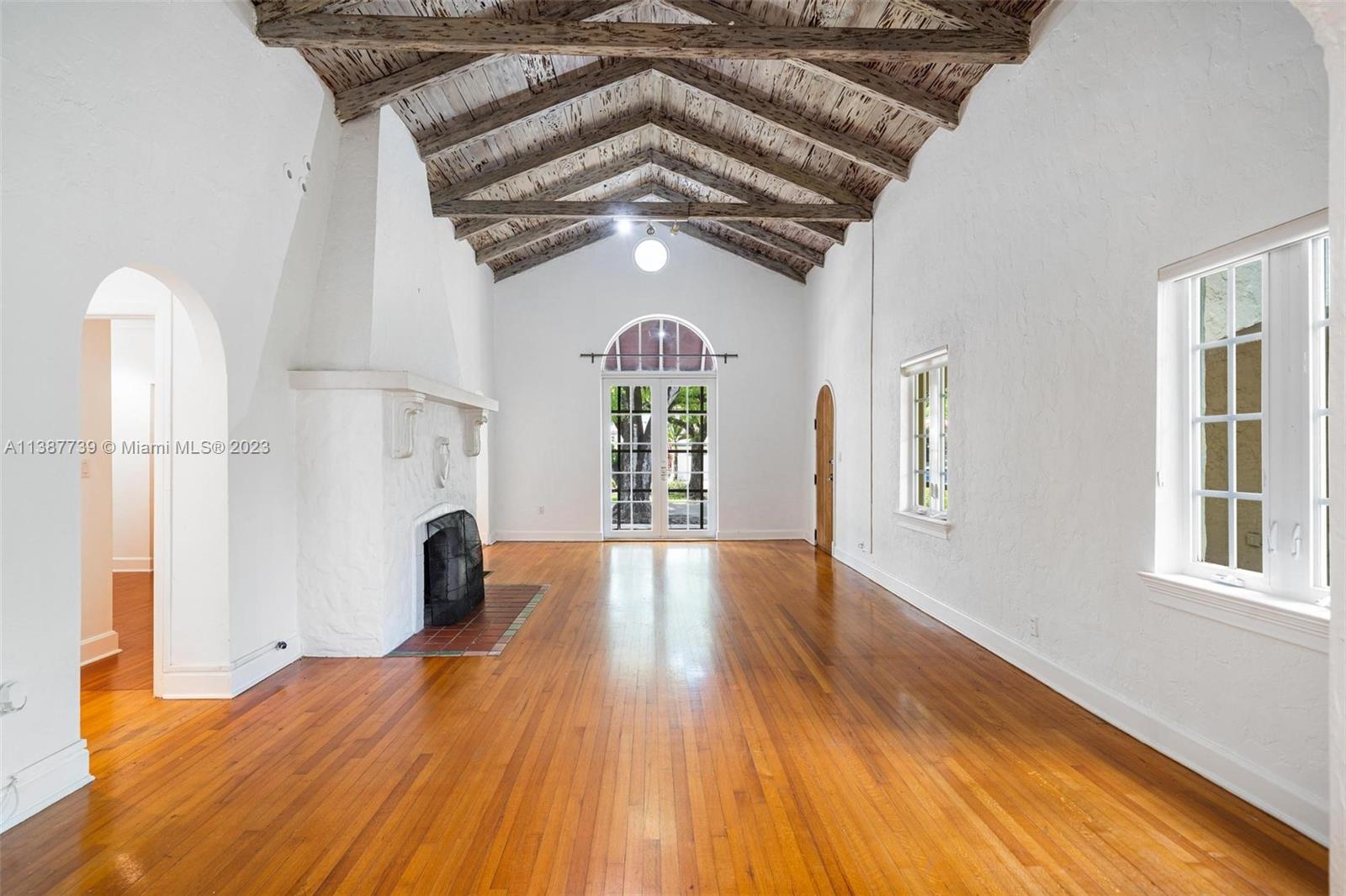 All the makings of a quintessential old Spanish in the Gables - this home is ready for some love to enhance its unique architectural features. Located in the highly desirable "Golden Triangle" of Coral Gables, this 3/2 home boasts an impressive vaulted ceiling flanked by a fireplace and features a bonus: remodeled, detached cottage that includes a full room, closet and cabana bath that leads to the pool. Home has been updated with impact windows & doors (minus kitchen windows). Enjoy Gables living at its best: take a short walk to the Biltmore Hotel and golf course, Coral Gables Youth Center and newly remodeled library or experience fine dining close by in downtown Gables and the new Plaza Coral Gables Development.