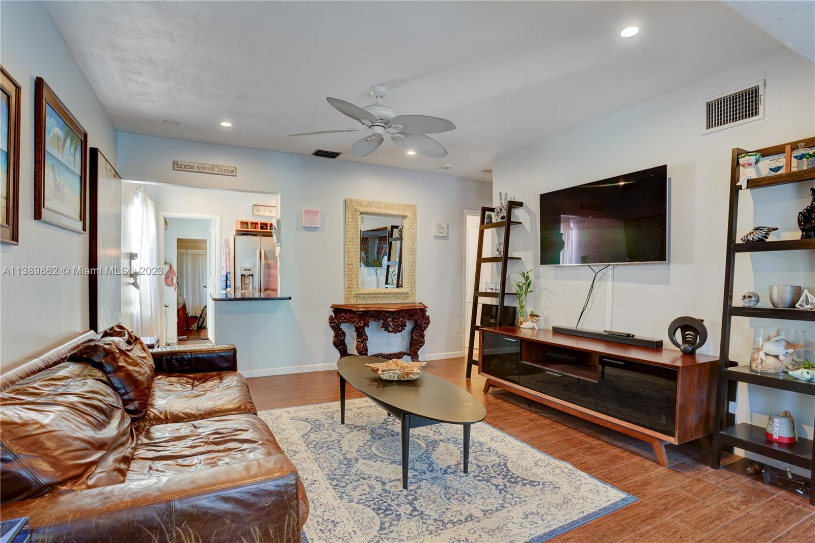 This 3 bedroom home in the sought-after neighborhood of Alta Vista is full of Fort Lauderdale charm! The home features a split floor plan with beautiful wood tile flooring throughout, impact windows and doors, updated kitchen with wood cabinetry, granite countertops and stainless steel appliances and a bright and airy Florida/Sun room. Outside enjoy a shaded front yard patio and an ample fenced in backyard with enough room for a pool, a long concrete driveway with tons of parking space, large fruitful mango tree and so much more.