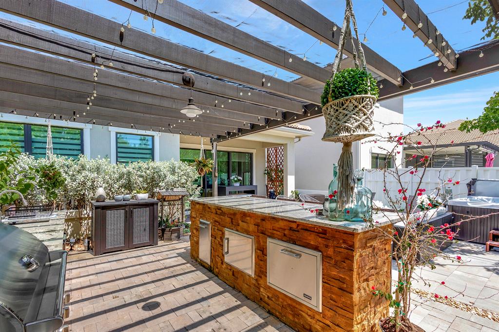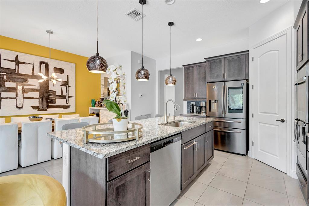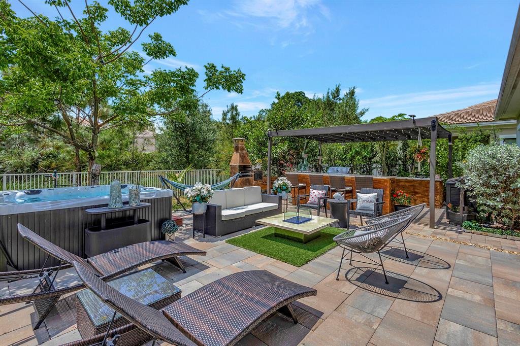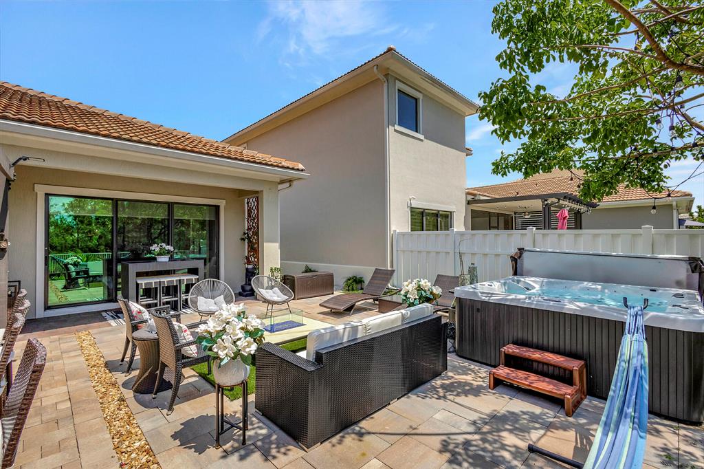 Incredible 3-bedroom and den, 2.5-bathroom home with an amazing outdoor entertainment area, which includes a Jacuzzi, outdoor kitchen and grilling area. Desirable open-concept living area and a spacious kitchen. The primary bedroom features an en-suite bathroom, with a tub a a huge walk in closet. Remaining bedrooms provide comfort for family or guests. Tile in the entire home. Impact glass windows, doors & garage door. New water system purifier recently installed. Updated Samsung refrigerator with touchscreen. Garage refrigerator stays with the property. Patio furniture negotiable. HOA fee includes yard maintenance. Community has pool, spa, playground, clubhouse & gym. Conveniently located near several shopping centers, grocery stores, restaurants, park and house of worship.