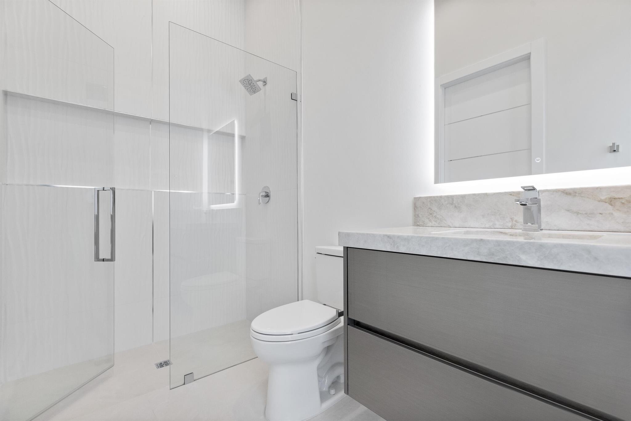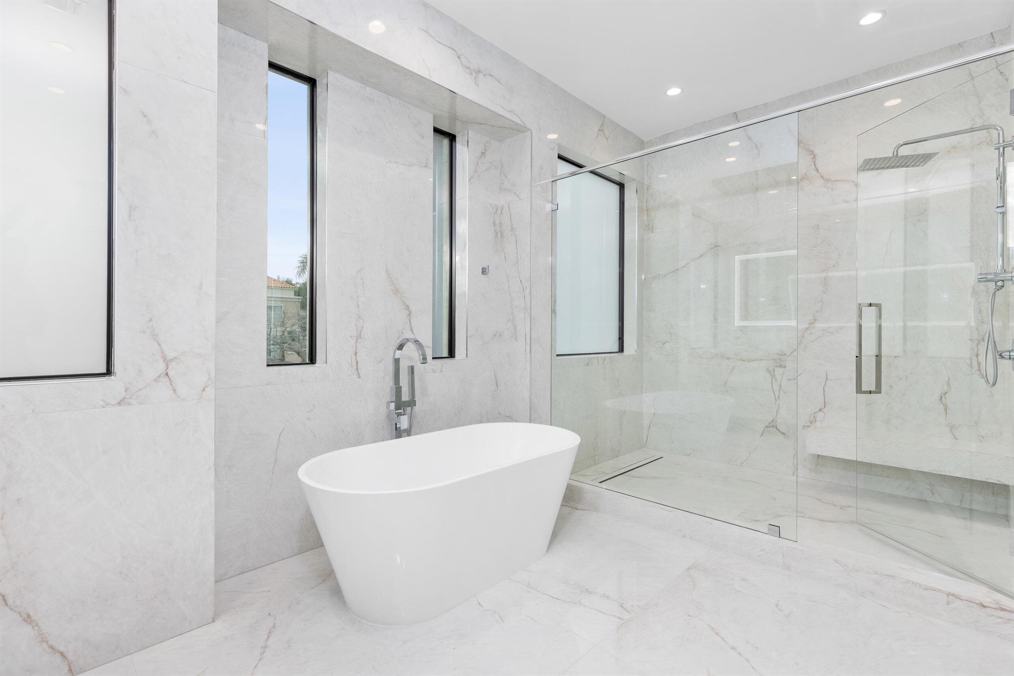 Indulge in the pinnacle of luxury living with this sophisticated contemporary estate. This exceptional home is nestled in the heart of Boca Raton within the prestigious Boca Villas community. This visionary two-story residence, crafted by the esteemed Yacov Development Group, seamlessly blends modern elegance with timeless charm. As you enter through the magnificent 10 ft glass entry door, prepare to be immersed in a world of refined elegance and meticulous attention to detail. Boasting six bedrooms, each featuring an en-suite bathroom, along with a powder room and full cabana bath, this custom home offers abundant space and convenience. The open concept design creates a seamless flow, ideal for entertaining and comfortable living.