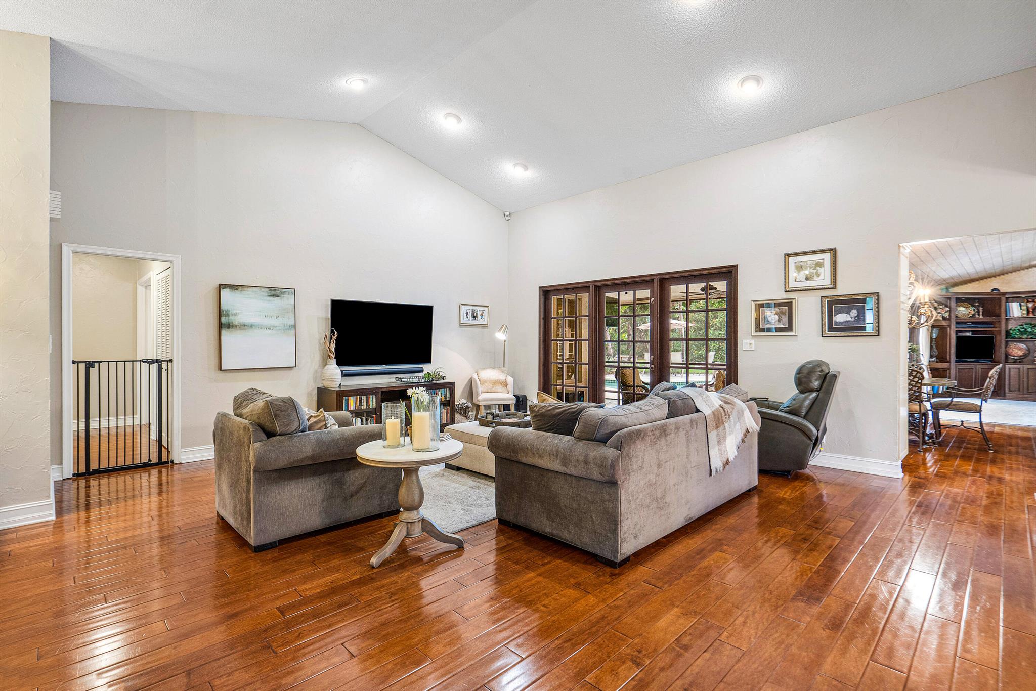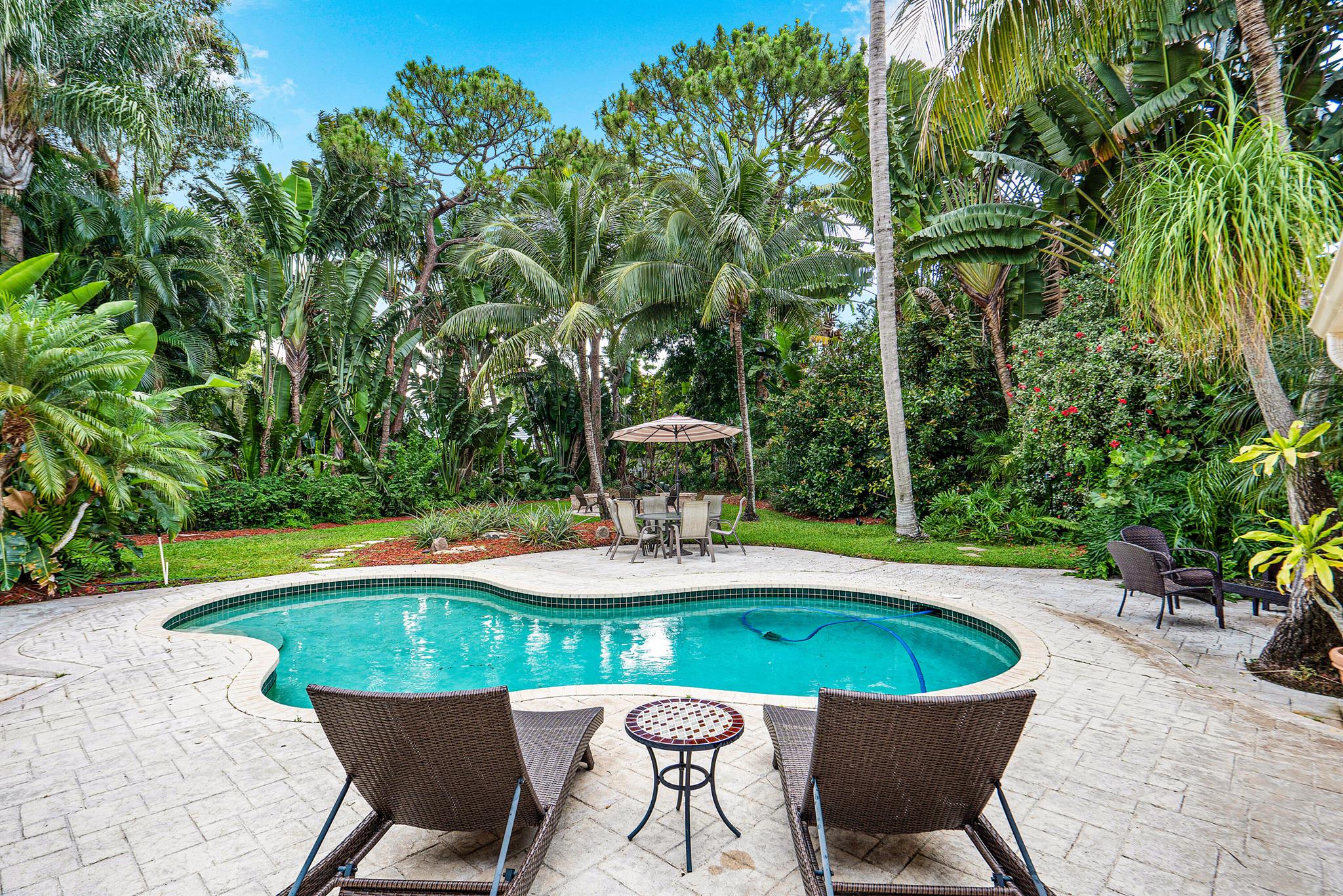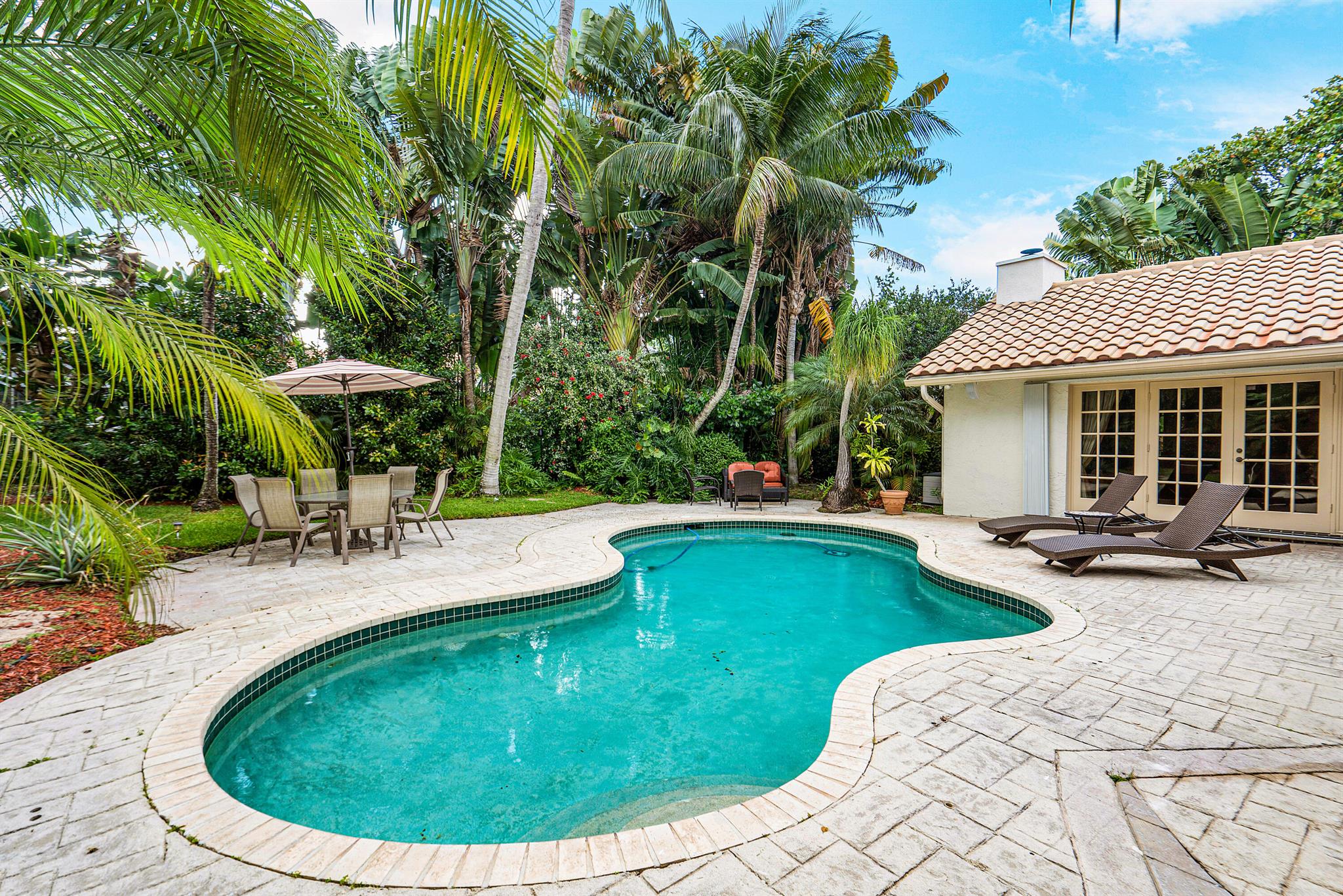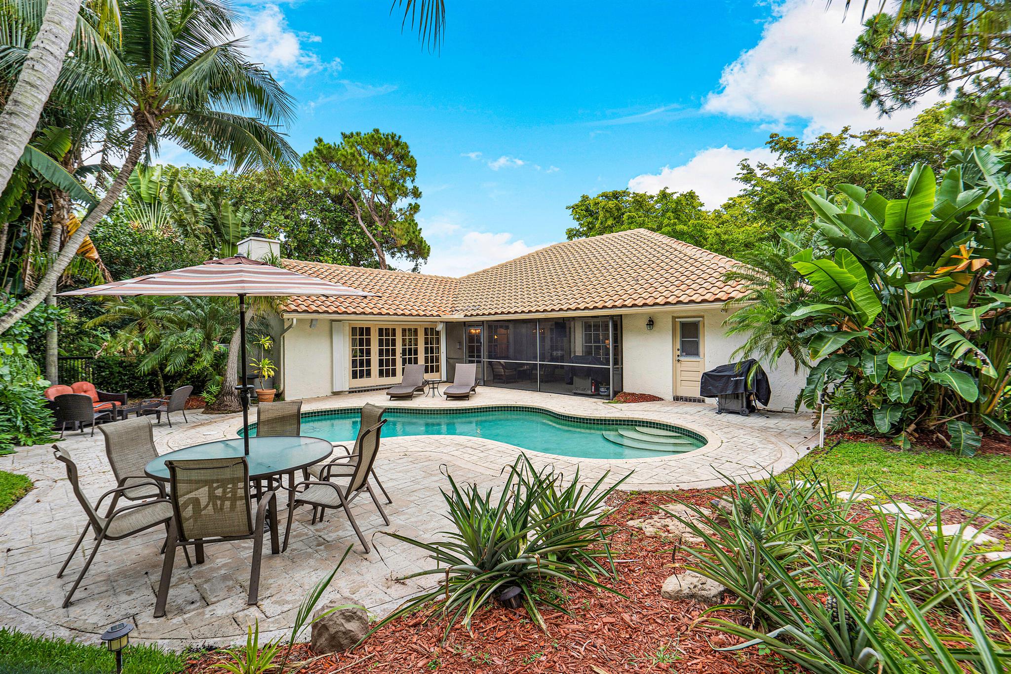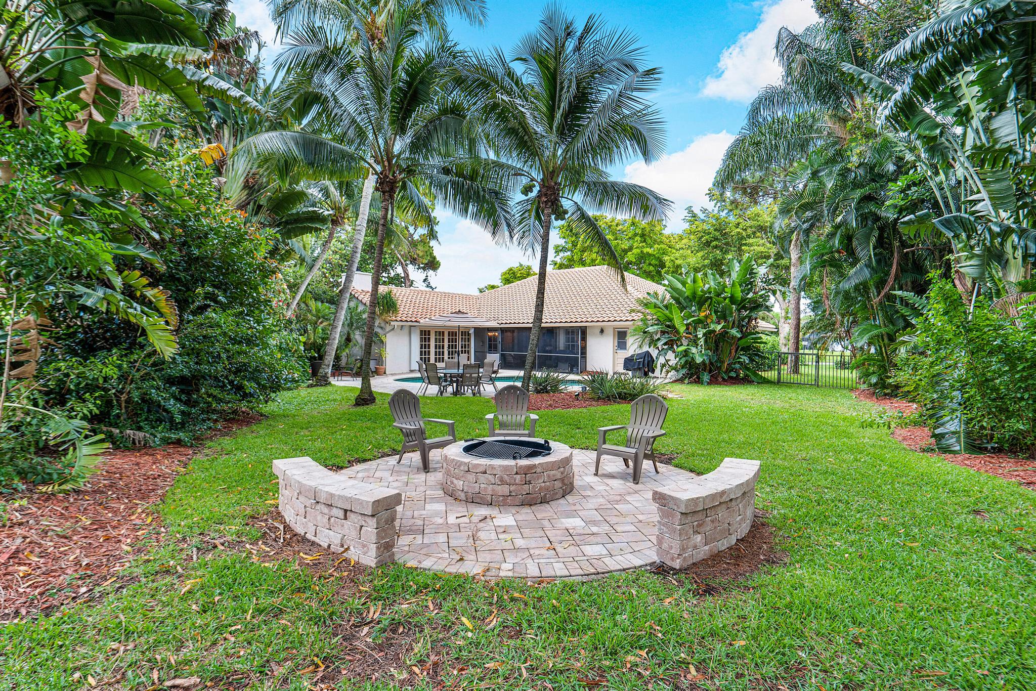 SELLERS MOTIVATED. Centrally located in Boca Raton in the beautifully landscaped Colonnade community on just under 1/2 an acre private lot. This open layout, single story home features 4 Bedrooms, 2.5 baths, wood floors, granite kitchen countertops with plenty of space for cooking and a fireplace. Outside features a comfortable screened in patio area as well as a generous sized pool and HUGE yard filled with fruit trees, beautiful landscaping and a fire pit. This house has lots of indoor and outdoor spaces for entertaining.Located on a quiet street away from any major roads and a few blocks from Boca Tierra Park located within the community featuring basketball and tennis courts, playground, bike and walking trails, open field and covered picnic areas.The home is zoned for A rated