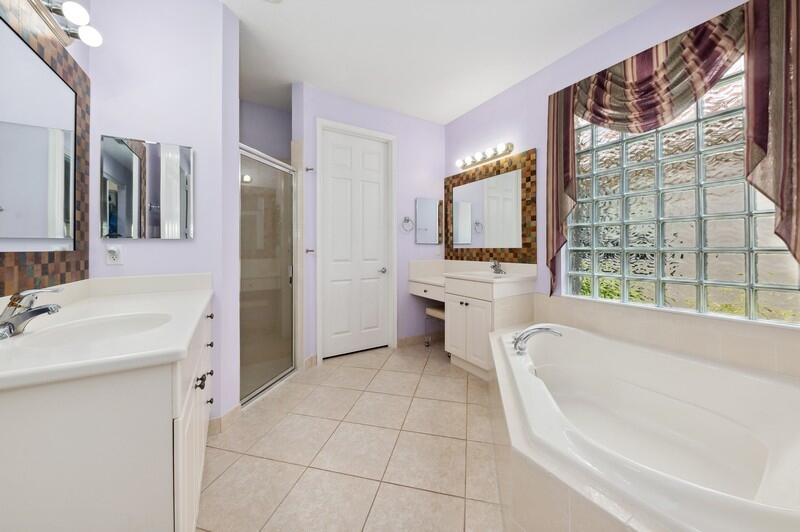 Beautifully maintained 3 bedrooms, 2 baths, 2-car garage home. Interior has high ceilings, tiled throughout on the diagonal. Kitchen has stainless steel appliances, 42'' cabinets, cook island, water purification system. Water softener system 2018, The AC 2013, hot water tank 2015, Accordion shutters installed 2018. Monthly fees also include Xfinity premium cable channels, ADT alarm system, LAN line, wi-fi internet. The clubhouse offers lots of activities & amenities, tennis courts , heated pools, an aquatrac pool, shuffleboard, pickle ball, hot tub, showers, sauna, workout , exercise, billiards, movie, library with Computer & much more. Community close to everything you may desire . All sizes and fees are approx. Pet friendly.