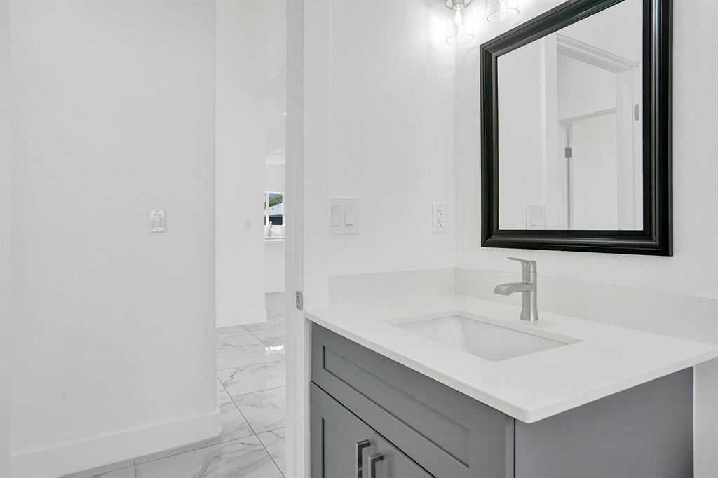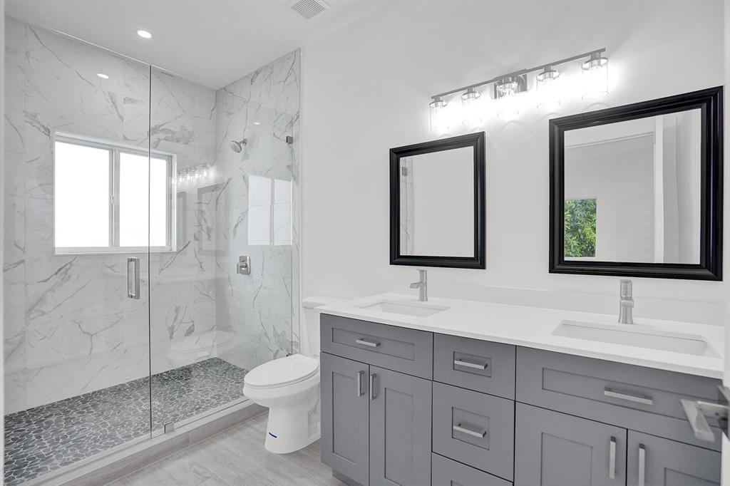 Welcome to this luxurious new construction home located in the heart of Pompano Beach. This house was completed in 2023 and is ready for its first resident. This modern home offers three spacious bedrooms and two beautifully designed bathrooms. The primary bedroom has a walk-in closet, double vanity, and a walk-in shower with frameless glass. The nine-foot ceilings and tile flooring throughout this house give a sense of openness and space. The stainless-steel appliances in the kitchen, include a drawer microwave, vent hood, range, and refrigerator with ice maker, were all purchased brand new and await their first use. The waterfall edge quartz countertops add a touch of elegance to the kitchen...