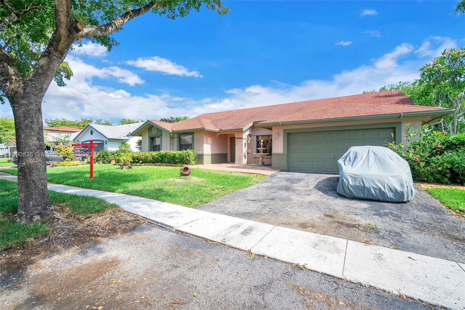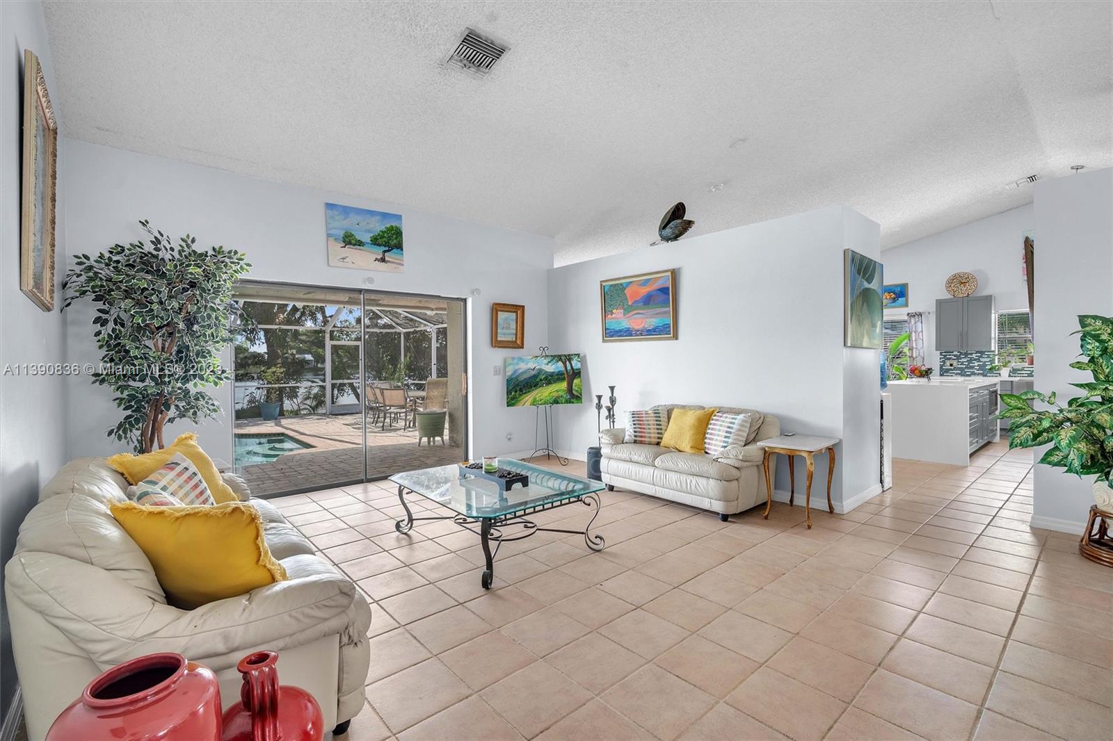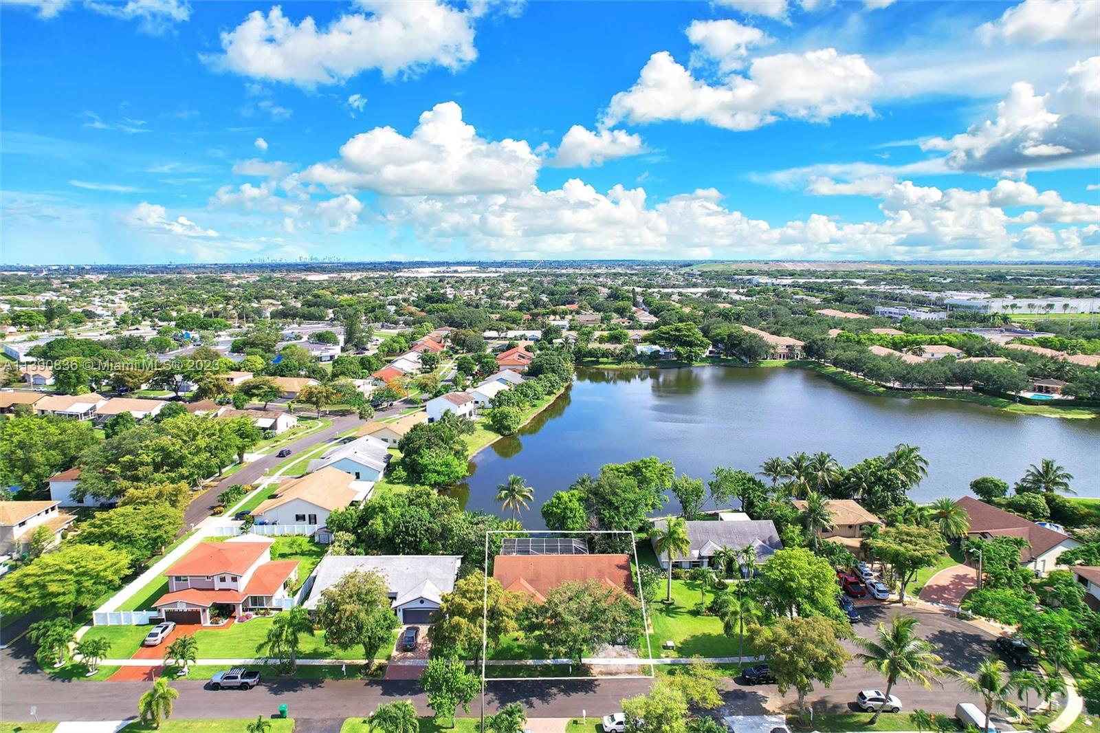 This beautiful & spacious pool & lakefront property sits on a very private and quiet street. It has three bedrooms & three bathrooms, family room & a two car garage. The pool & lake can be viewed from all the main living areas, including the main bedroom. The newly designed modern kitchen is a cook's dream! It has a Quarts waterfall large eating island, stainless appliances, glass backsplash, soft closing drawers & lots of storage space. Two of the spacious bedrooms include private bathrooms. The property is completely tiled & has lots of natural light. The property boasts a 3D shingles roof, replaced pool pump, hurricane panels & newer water heater. It has a very low association & it is walking distance to the elementary school & a park. Easy access to highway.