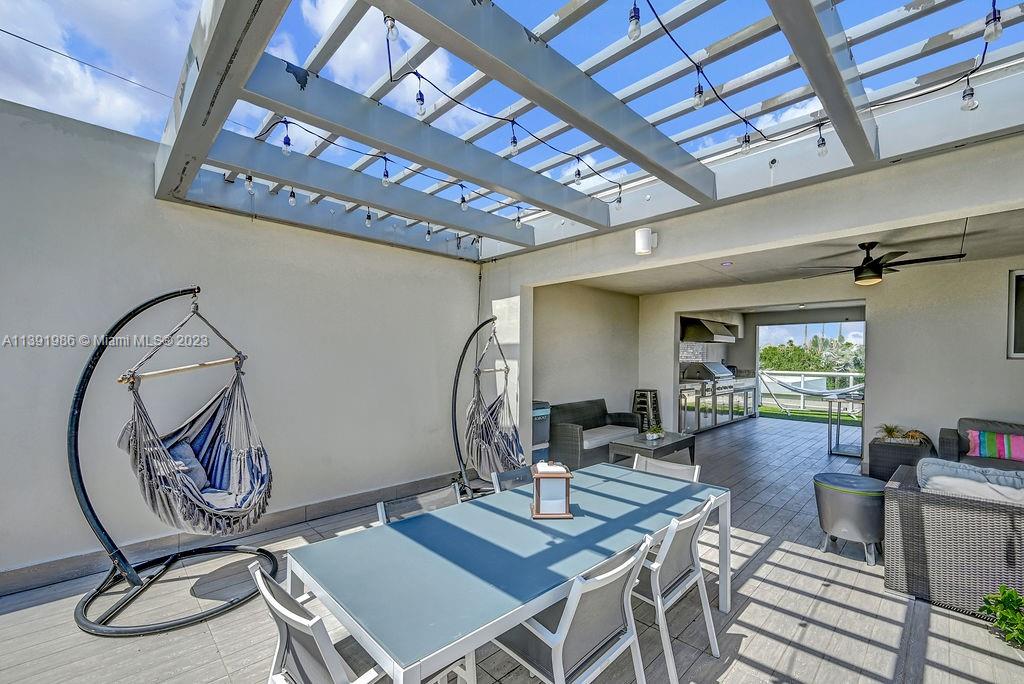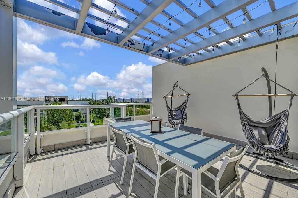 BACK ON MARKET! Modern Townhome at Landmark Doral. Amazing location located right in front of a beautiful walking park! This trip-level unit has modern finishes featuring an open kitchen at entry level and a beautiful rooftop terrace with an outdoor kitchen and lounge area perfect for entertaining!