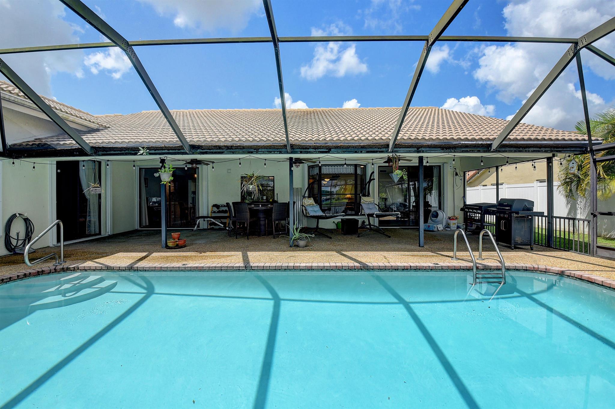 Gated Community - NO membership fee or initial buy-in. NO HOA application. LOW HOA only about $564.99 QUARTERLY. This covers common areas/ 24-hr. guard at the gated entrance.Cul-de-sac Lake Home! Fully fenced in back yard.Safe pet&family friendly neighborhood.Private heated saltwater pool inside screened in covered patio. High vaulted ceilings. No stairs or carpets.BONUS ROOM (not included in the BR count) can be a nursery, office, wardrobe. FULL hurricane protection: Accordion shutters & HR front door. 2 car garage (w/ AC) electric car charging stationWithin a mile of public golf, playground, waterpark, dog park and more. Roof 2006 Inside AC less than 2 yoOutdoor AC less than 10 yoWater Heater more than 10 yoWasher/ dryer, garage fridge don't convey.