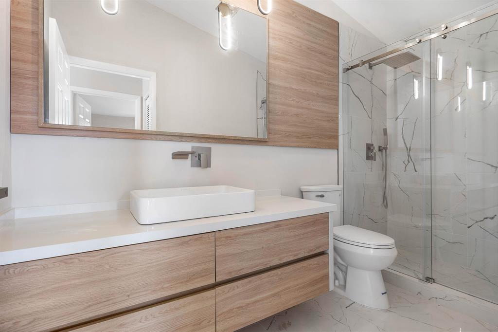 Move in ready! Stunning Designer touched lake front home with high end finishes. Minutes to Beach, FAU, Downtown Mizner Park & Delray Beach Atlantic Avenue! Best A+ Rated Schools!This one story 3/2 in Brentwood Estates has a bright, open floor plan, split bedrooms, vaulted ceilings, sky lights and recessed lighting. Quiet neighborhood with serene lake views and a lush, private backyard; includes a paved, screen patio. Modern and open layout kitchen and updated hardware. The master bedroom has a large walk in closet with new shelving and storage. The stylish ensuite is completed with a dual modern sinks, quartz vanity, soaking tub and glass shower. ROOF is 2009. Community has 2 Renovated (2023) Resort Style Swimming Pools, Lighted Tennis Court, Fitness Center, Ballroom and Nature Trails.