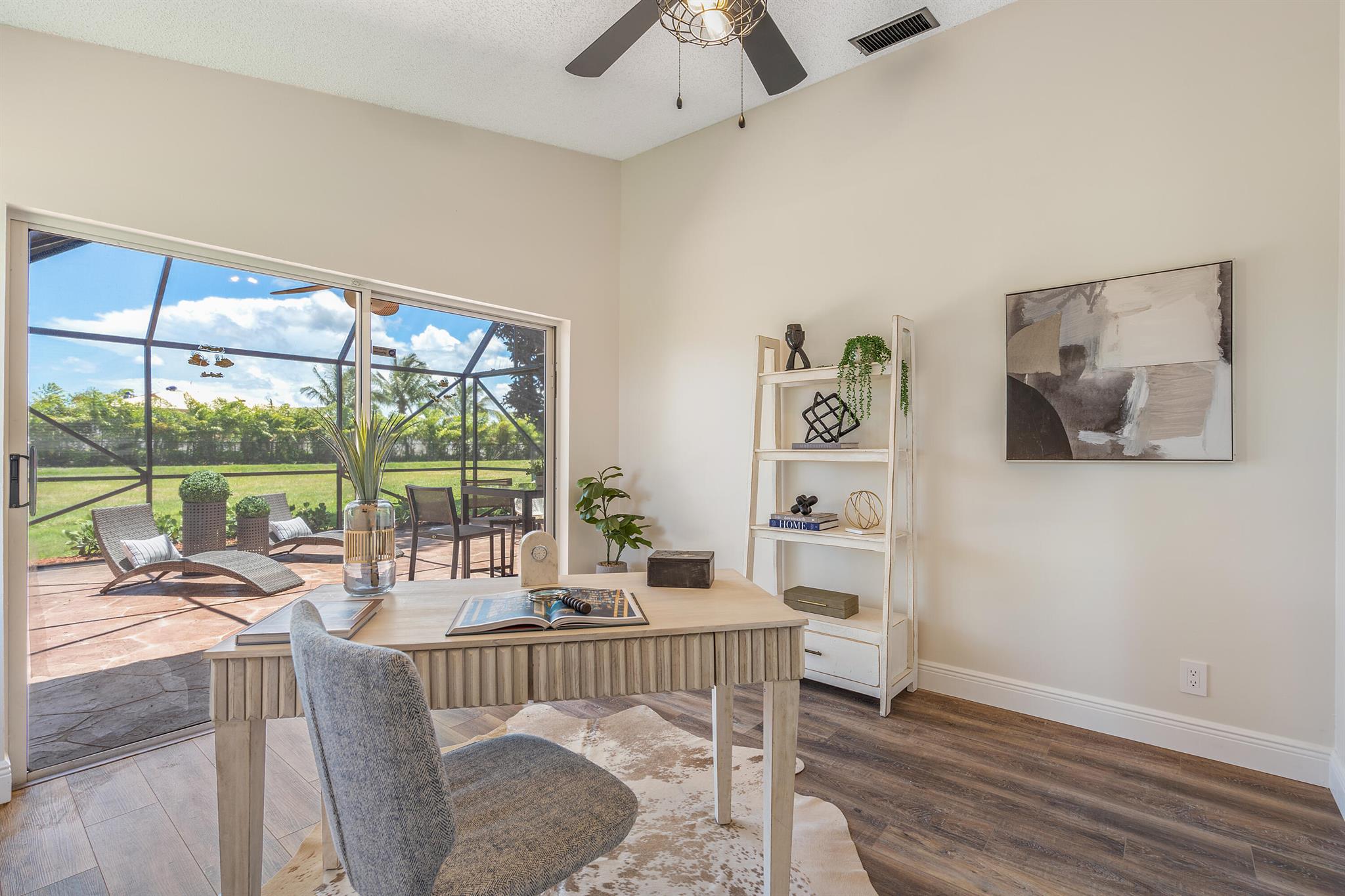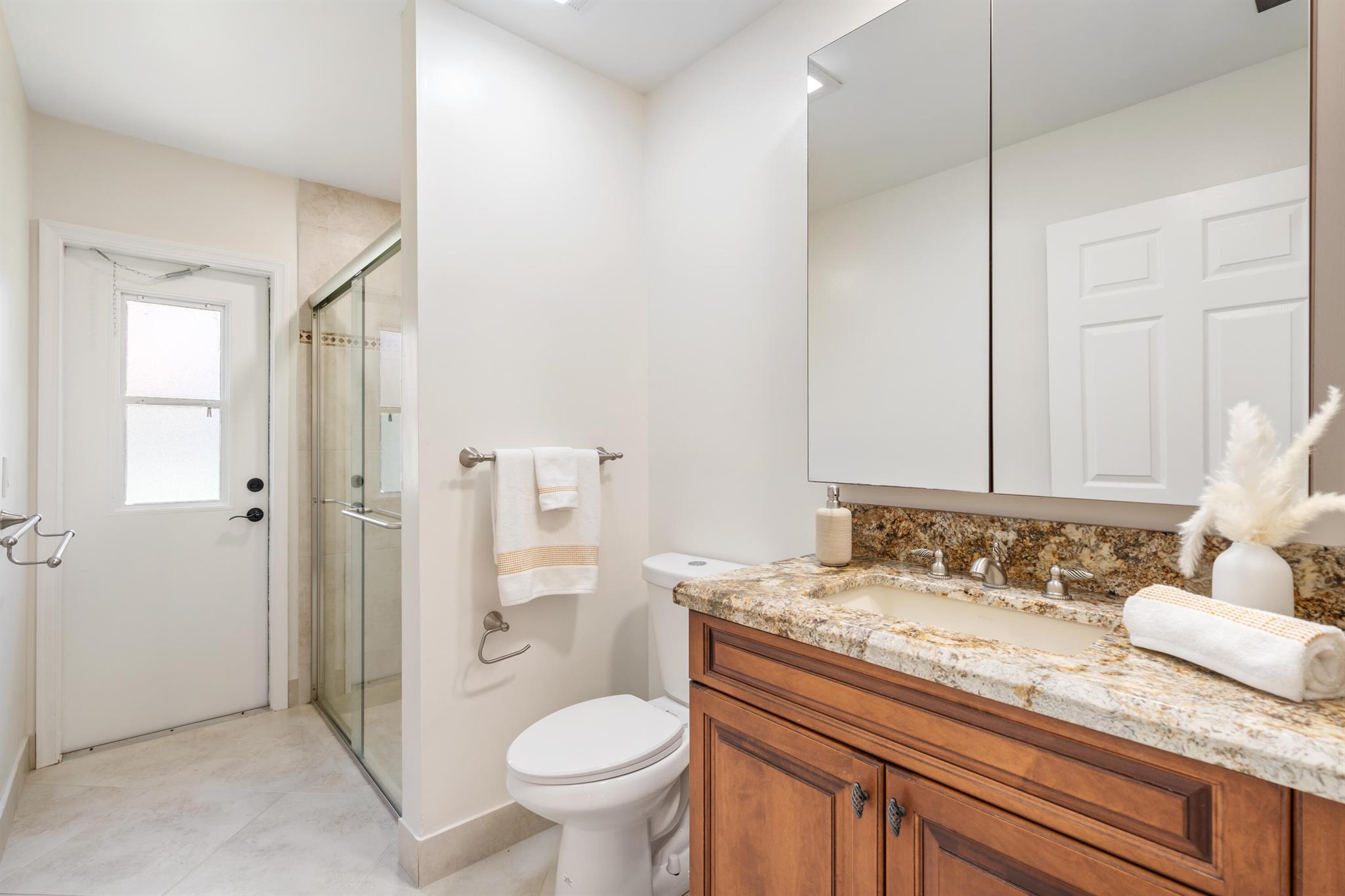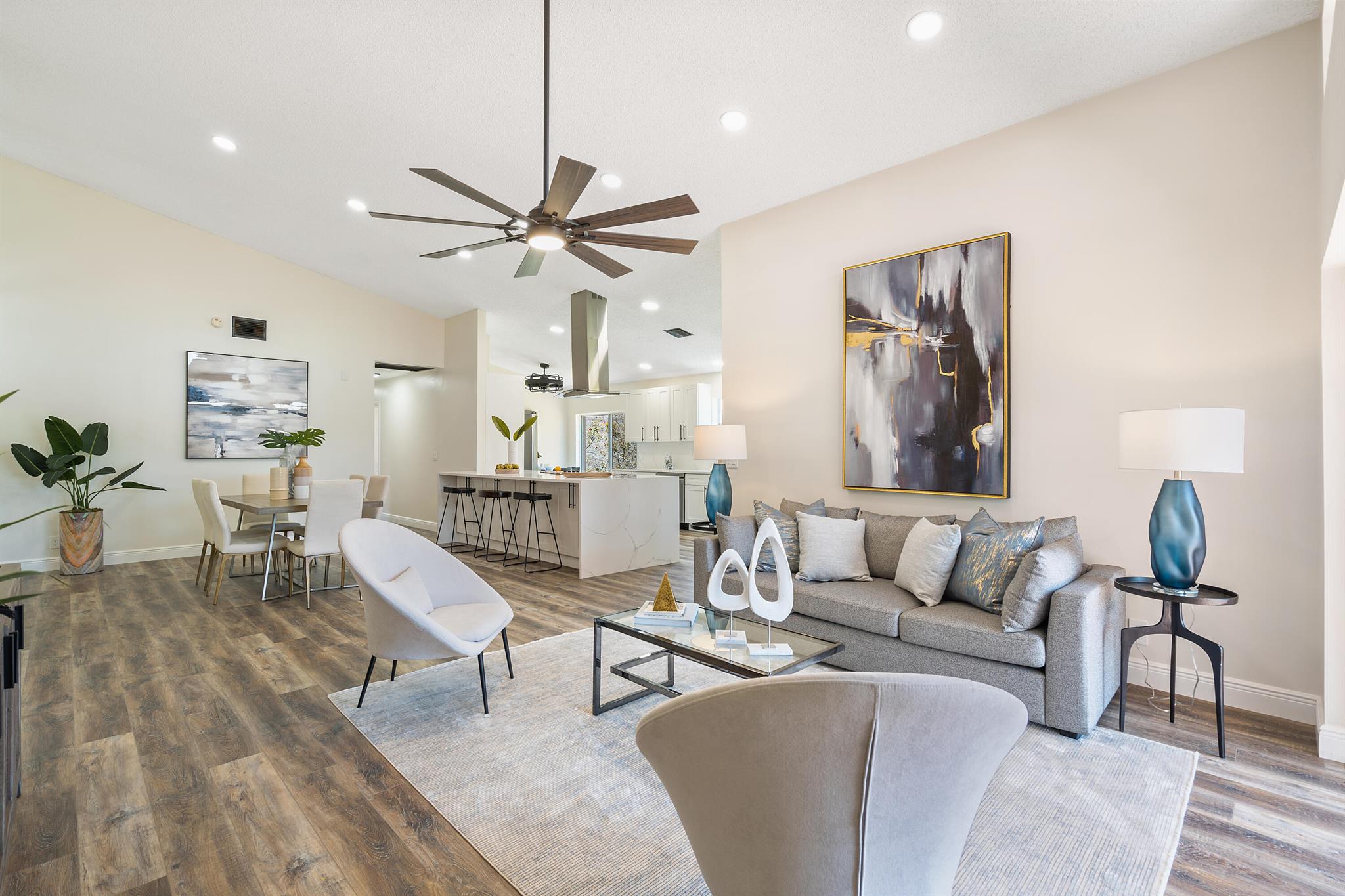Beautifully renovated home situated in the highly sought-after Brentwood neighborhood. This home has undergone a complete renovation from top to bottom. Brand new kitchen with white shaker cabinets with soft close feature, Quartz countertops, and brand-new SS appliances. Bonus room that can be used as an office or family room . Newly installed lighting fixtures and fans, freshly painted, pristine flooring, a recently replaced water heater, an updated AC system, stylishly tiled screened patio all contribute to the overall allure of this property. The primary suite offers a newly constructed walk-in closet, and a fully renovated ensuite bath. Walking distance to shopping Minutes to Beach, FAU, Downtown Mizner Park & Delray Beach Atlantic Avenue! Best A+ Rated Schools