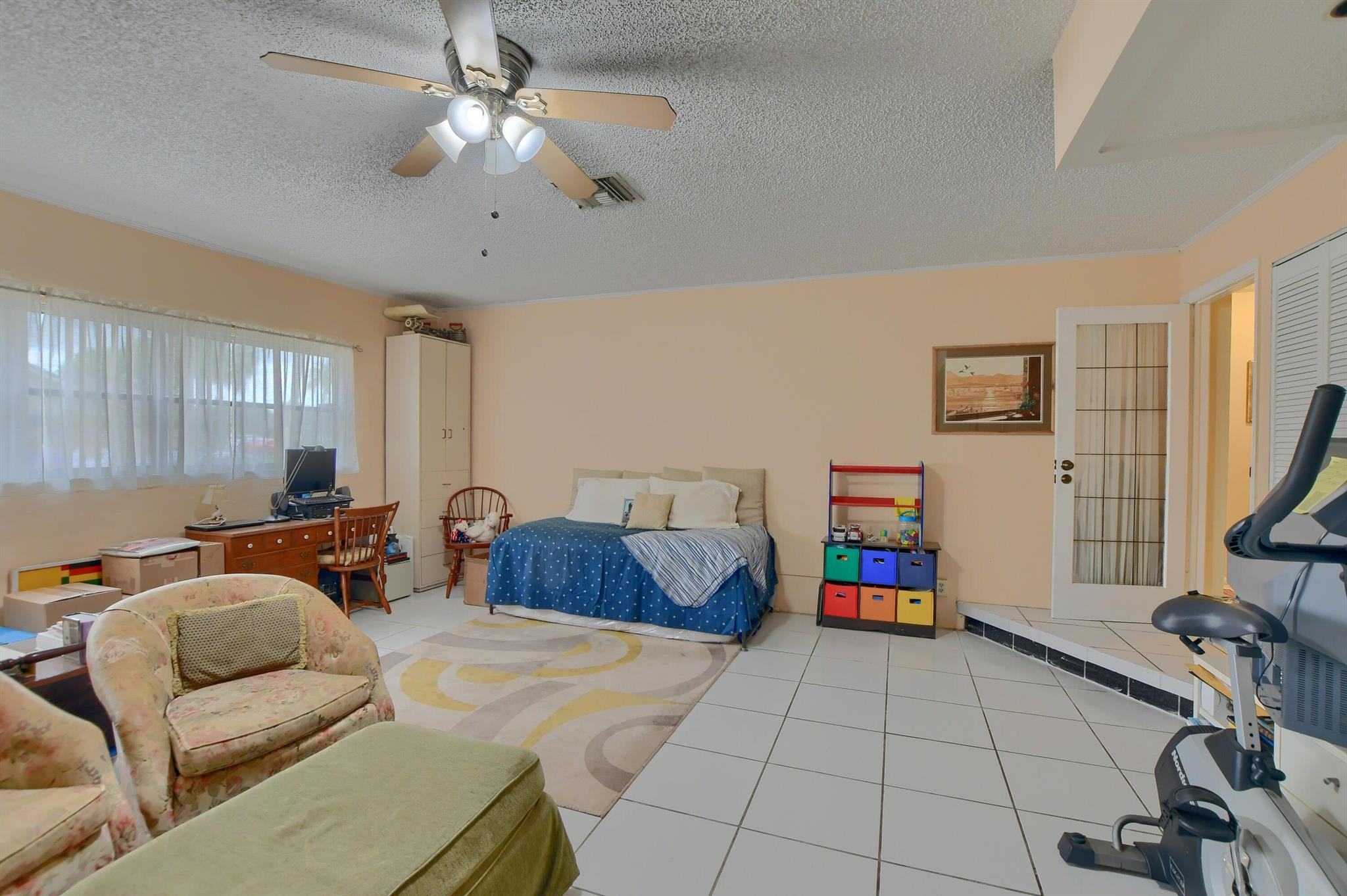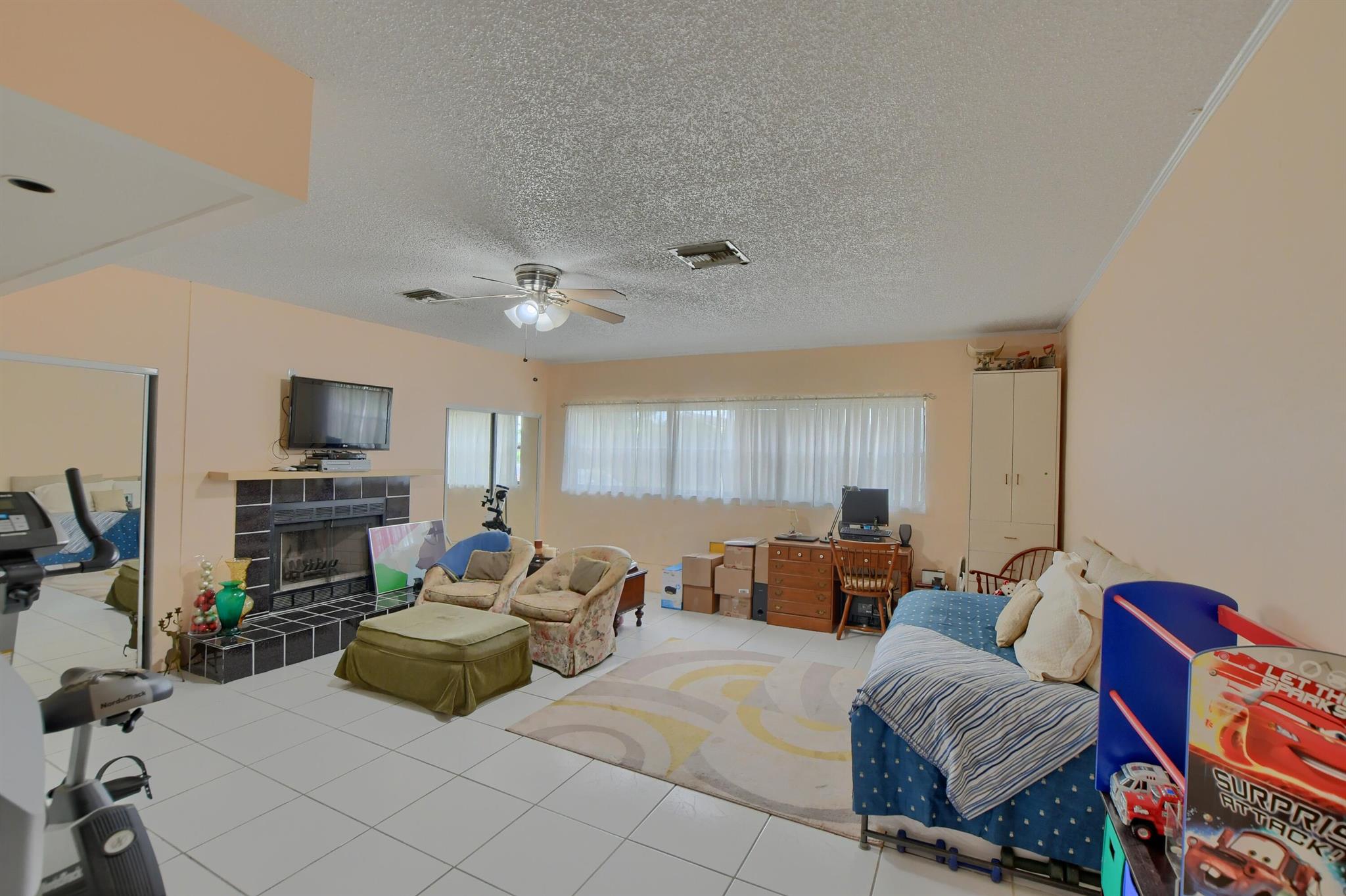 This well maintained home offers 3 bedrooms, 2 baths, and a converted 2-car garage bonus room! The bonus room is versatile, serving as a home office, den, or playroom, complete with a fireplace and plenty of storage. With ceramic tile throughout, vaulted ceilings, and a granite kitchen with a pass-through window, this home exudes style and functionality. The enclosed screened lanai and large private fenced yard with fruit trees provide an ideal outdoor space. There's even room to add a pool! The property is well-maintained and offers freedoms rarely found in Boca Raton, as Southwind Lakes Community has no rental restrictions and allows boats, RVs, and commercial vehicles. Plus, you can bring your pets! The location is fantastic, with nearby retail, restaurants, & Schools!