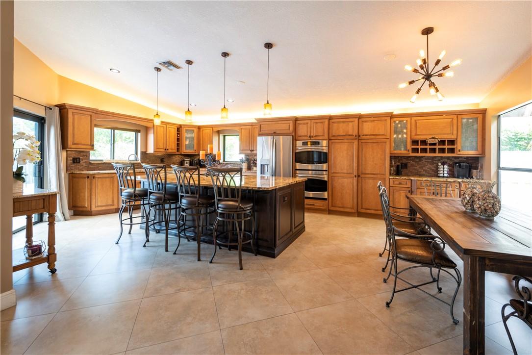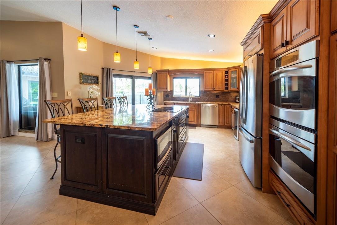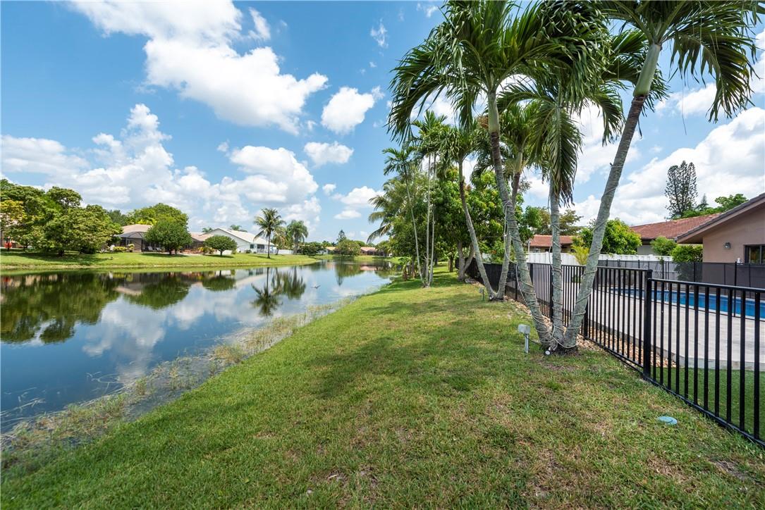 Enjoy magnificent sunsets from this four bedroom 2 1/2 bath, waterfront, pool home in Cypress Glen. Expansive open floor plan with oversized kitchen. Large custom Island, bar area with wine fridge double ovens. Impact windows across the back allowing wonderful views of the pool area and lake beyond.
