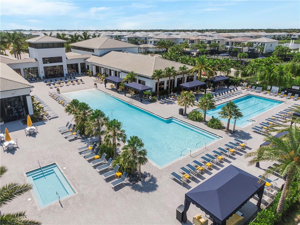 Wow! Just pack your suitcase & move in! Stunning Brand NEW Polynesia Premium model. Never lived in! RELAX on the patio w/serene water & fountain views! This Spacious 6 bed (one is open loft) 7 bath Executive home has 4693 air-conditioned sq ft & 5743 total sq ft to fully enjoy. Wait until you see the Exquisite wood staircase w/seamless glass & wood railing, absolutely STUNNING! The Chef's kitchen features 5 burner gas stove, expansive island, stone counters, wall ovens & eat-in kitchen. Cabana bath ready for a future pool. Great natural light, Impact glass windows/doors ~ Fantastic Fountain views! Bonus: extended living & bedroom areas + upgraded facade w/balcony. Resort amenities: restaurant, regulation basketball court, fitness center, arcade, pools, pickleball courts, splash pad & more!