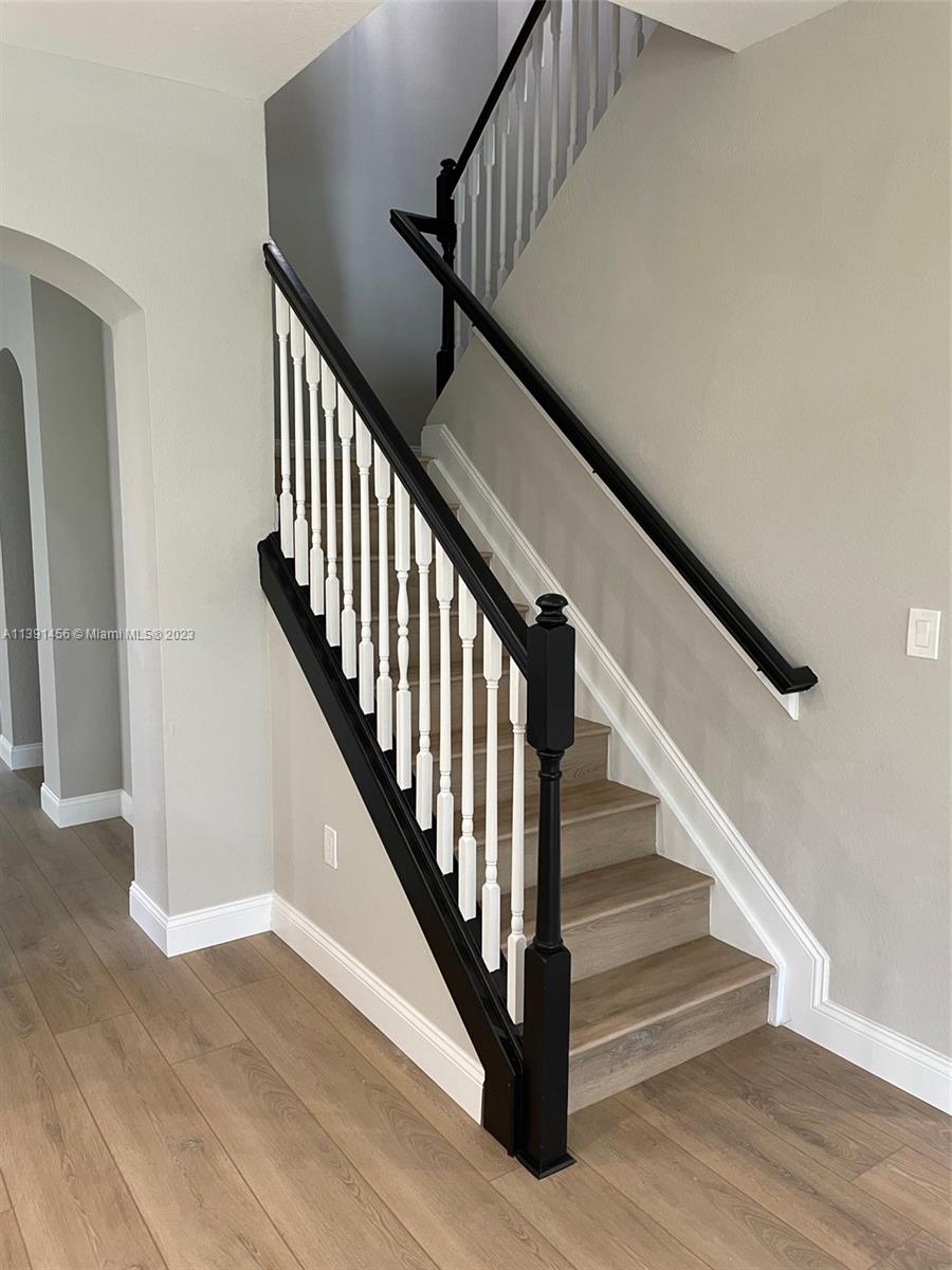 Looking for a beautiful and completely renovated 2-story home in a gated community in central Miramar on the water? This 4 bedroom, plus office, and 3 full bathroom home has it all. From the tree lined streets to the community clubhouse. This home features all new wood kitchen and bathroom cabinets with quartz counters, brand new SS appliances throughout, new floor and wall tile in the bathrooms with new toilets and tubs, new HVAC systems, new luxury vinyl flooring and baseboards, completely painted inside and outside, new garage door openers, new led lighting, and new landscaping. One of the bedrooms is even located downstairs. From the rear covered patio, you can enjoy the views of the waterfront backyard with a huge mature oak tree to give plenty of shade. Come see this one today!