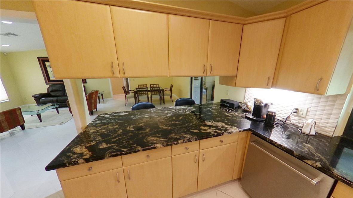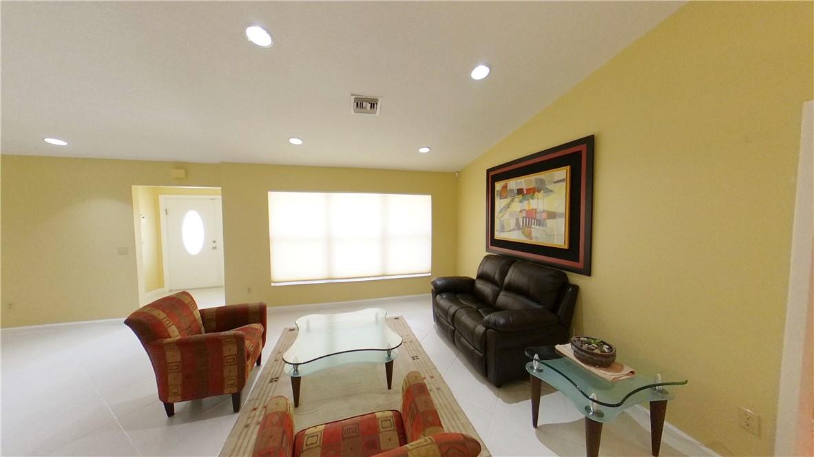 The home sits on one of the largest pie shaped lots and is in a cul-de-sac. The interior of the home has a large living area great room concept with volume ceilings and features a split bedroom plan with the master bedroom on the east side of the home and the other three bedrooms are located on the other side of the living area. The interior has knockdown ceilings and fresh paint. The kitchen features all stainless-steel KitchenAid appliances. Granite countertops with and custom design dimensional backsplash tiles with under-cabinet lighting. The large breakfast bar can accommodate four bar stools. Bathrooms were designed with custom cabinets designs by Vanico Maranyx cabinets. The master bedroom has 24-inch Porcelain tile throughout and flows into the bath and oversize shower.