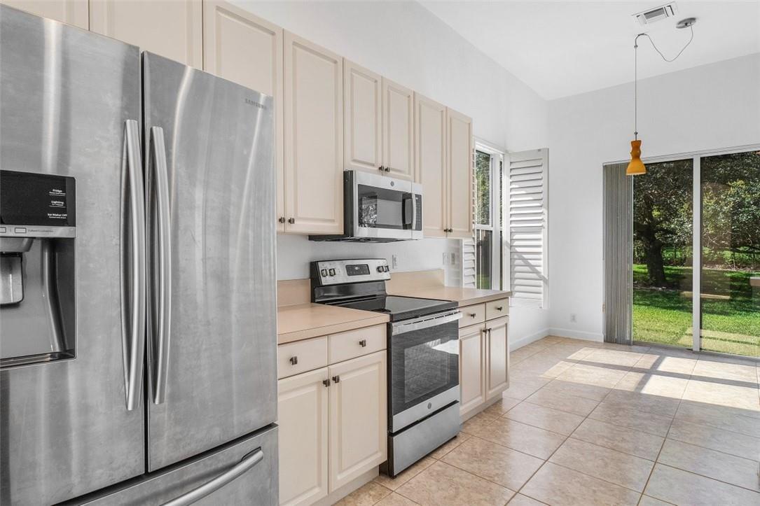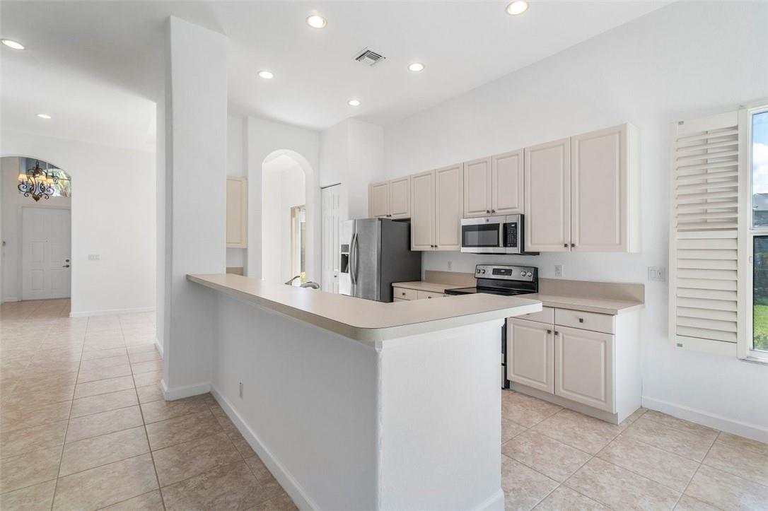 Wake up to wildlife; birds, squirrels, rabbits, and butterflies in this 3 Bedroom / 2 Bathroom home. Situated on a corner lot with a South-facing backyard, allowing great natural light all day long, and with plenty of room for a pool. Freshly painted interior and exterior. Freshly painted garage floor, new landscaping and a refinished driveway. There is a huge open layout kitchen and high vaulted ceilings. Master bedroom wall has been removed to create additional living space. This wall is easily replaceable and we have several bids to do the construction. Heron Bay is an amenity rich community with 2 resort style clubhouses with fully equipped fitness center, tennis courts, walking trails etc.