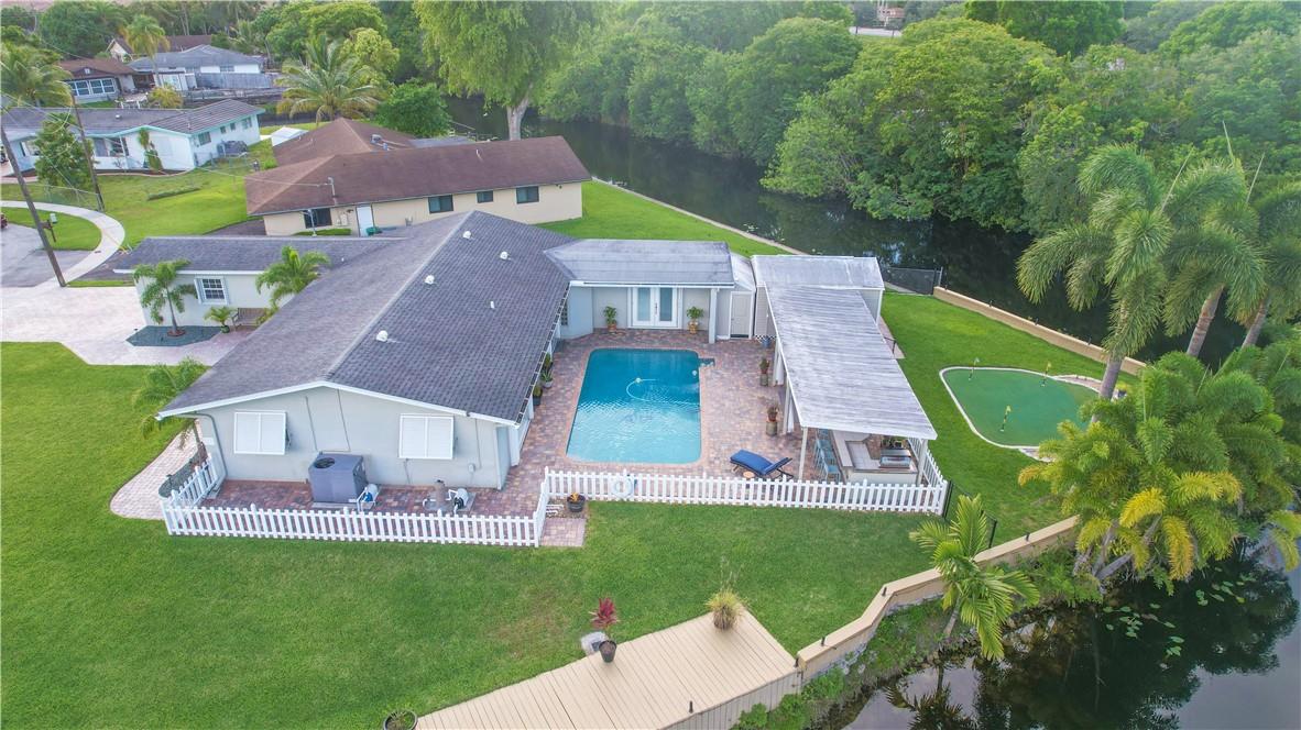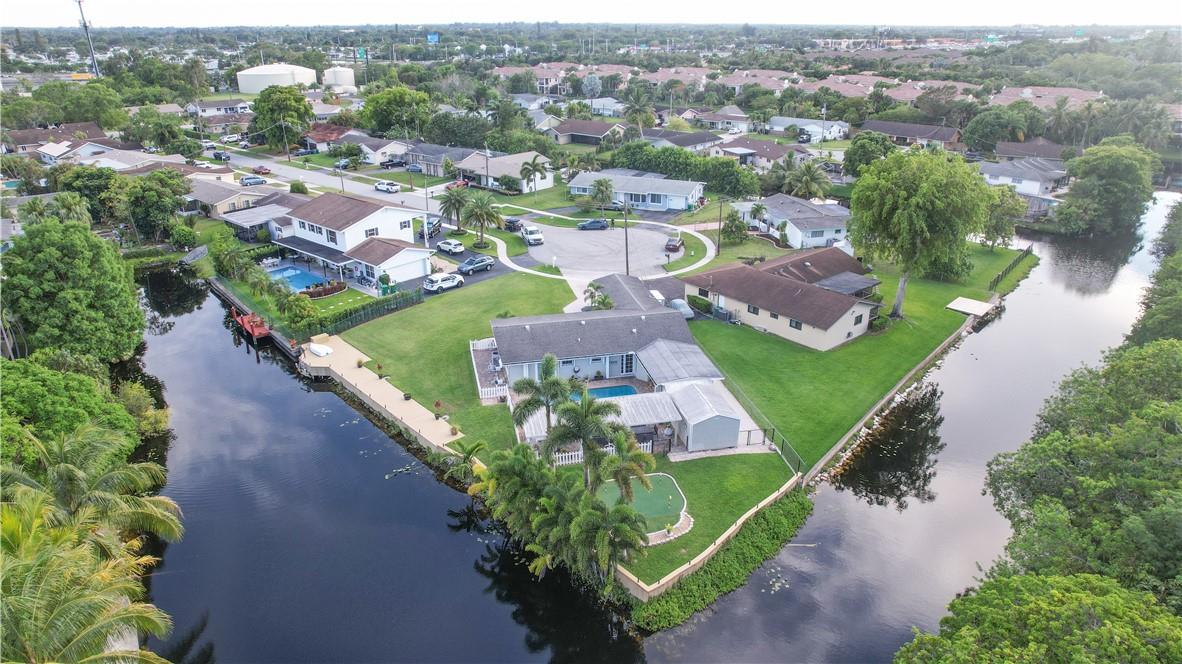 Welcome to your own private paradise where luxury meets comfort! This stunning waterfront property sits on a peaceful canal, featuring a private 82’ dock perfect for boating & fishing enthusiasts. Beautifully landscaped & boasts a massive lot size of 13620 sqft, providing ample space for outdoor activities. Enjoy a game of mini golf, take a refreshing dip in your pool, or fire up the BBQ. The house is completely renovated from top to bottom. You'll be impressed by the turnkey design choices in every corner. The sprinkler system cleverly runs on canal water at no cost to the owner. Equipped with a 15,000 watt generator & multiple storage sheds. Hop on your golf cart, Publix is around the corner. Located close to I-595, Turnpike, airport, and beaches. NO HOA!