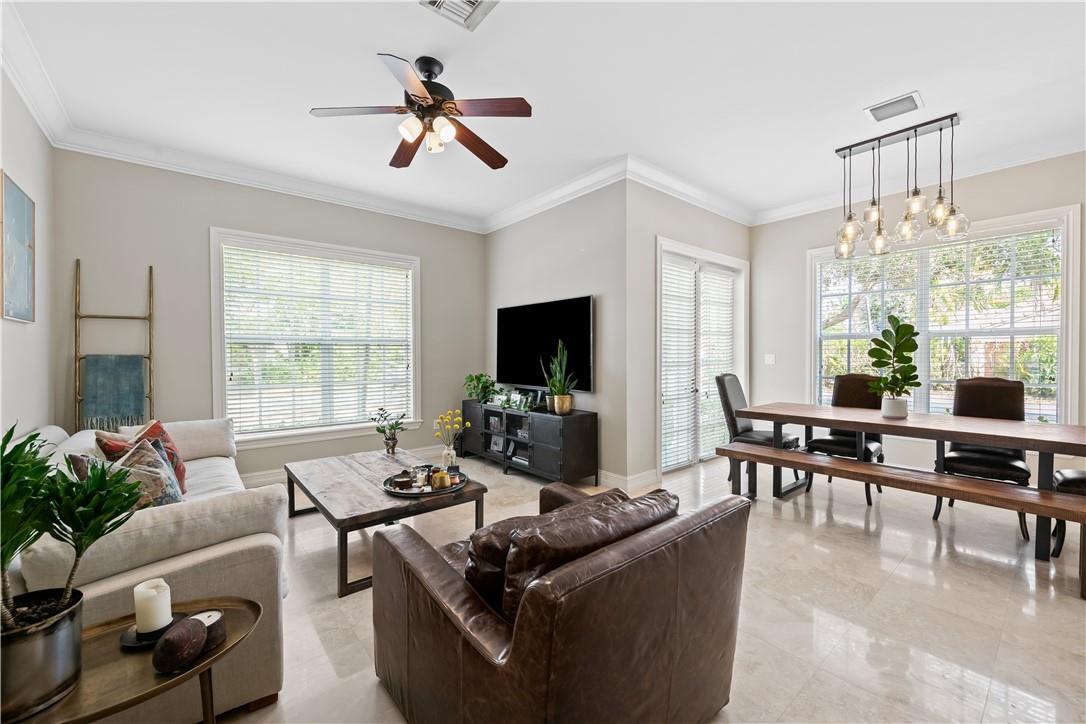 Live in what feels like a single-family home without the maintenance. Welcome to Jamestown Square Located in Lake Ridge, an immaculate corner townhome built in 2007 with over 2,000 SF, features 3 bedrooms, 2.5 bathrooms, and a 2-car garage. The bright open floor plan & volume ceilings are conducive to today's lifestyle, with your kitchen, living room, and dining all in one ample space with polished and Travertine Marble floors. Upstairs is covered in Real Acacia Walnut hand-scraped hardwood floors where your three bedrooms are; The primary suite is more than a generous size with two walk-in closets. Just a quick 5-minute drive to Fort Lauderdale Beach, the famous Las Olas Blvd, and Downtown.