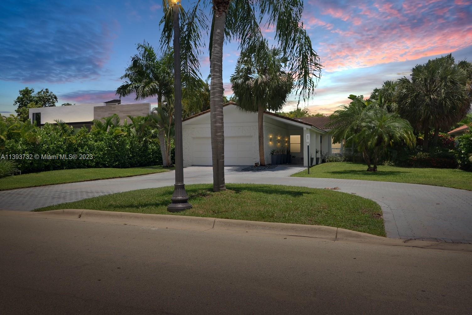 GOLDEN BEACH-GATED COMMUNITY-PRIVATE BEACH. Recently renovated 1-story home with 5 bedrooms, 4 baths + bonus office. Open floor plan with porcelain floors throughout. Sleek white kitchen with stainless steel appliances and quartz countertops, vaulted ceilings in the living area with French doors opening to an oversized backyard/pool area. Spacious master suite with his and hers closets. Move into this cozy ranch or build your dream home on this oversized 13,650 sf lot. Plans for a tropical modern 6,800 sf, 6 bd/7bth home available. Great location within walking distance to Tweedle Park.