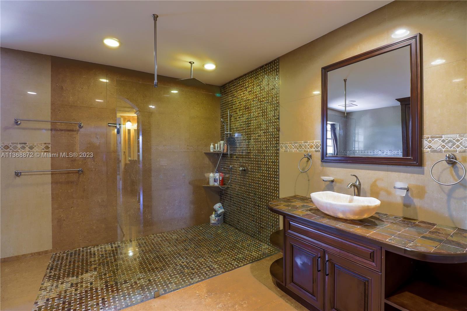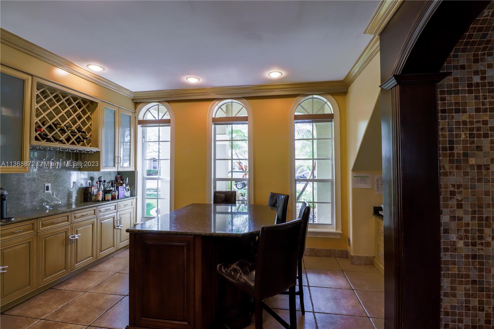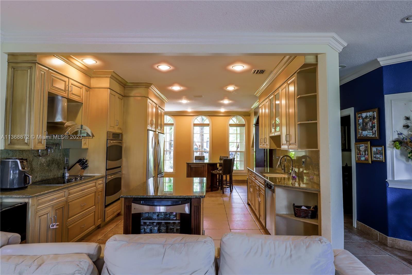 Custom 5 bd rm, 3.5 bth, 3 car garage home with all the upgrades in sought out, gated community @ Spring Valley Estates. Thoughtfully constructed with an open concept - large chef's kitchen, dbl islands, built in SS appliances, inclusive wine bar that opens to the living room. Expansive master suite encompasses an elaborate custom walk in closet, mstr bth w/ open walk in shower. 3 additional bd rms upstairs with custom closets, 1 in-law suite down stairs. Tile floors downstairs, bamboo floors upstairs. New hurricane rated custom front dbl doors, crown molding, custom window treatment, accordion shutters throughout, . 3 AC units, solar water heater, & laundry rm. Open backyard oasis, w/ heated pool, cabana bathroom, wide canal water views. New lush landscaping w/ lighting front & backyard.