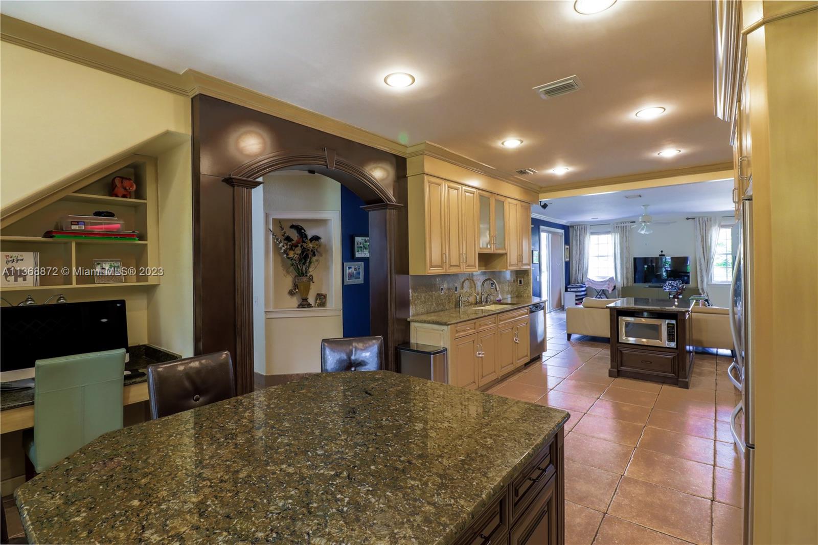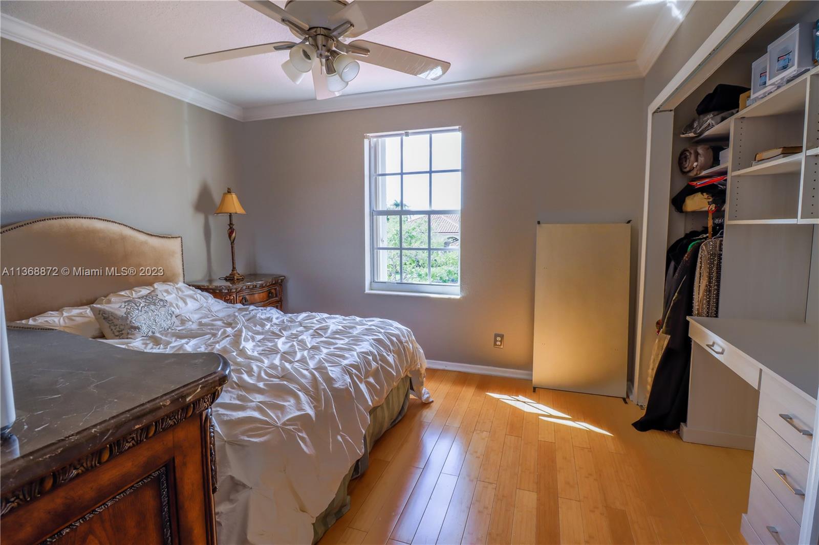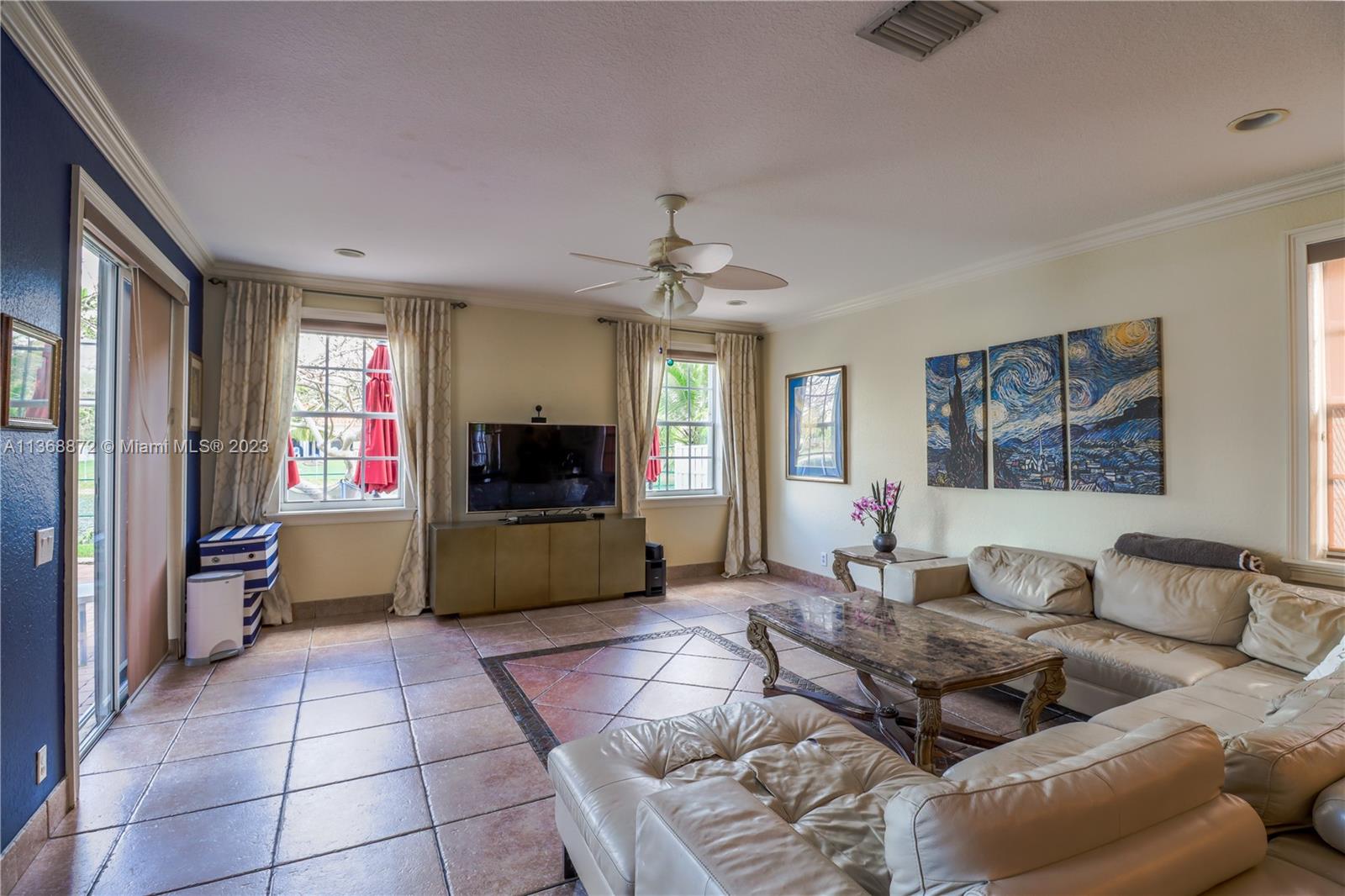 Custom 5 bd rm, 3.5 bth, 3 car garage home with all the upgrades in sought out, gated community @ Spring Valley Estates. Thoughtfully constructed with an open concept - large chef's kitchen, dbl islands, built in SS appliances, inclusive wine bar that opens to the living room. Expansive master suite encompasses an elaborate custom walk in closet, mstr bth w/ open walk in shower. 3 additional bd rms upstairs with custom closets, 1 in-law suite down stairs. Tile floors downstairs, bamboo floors upstairs. New hurricane rated custom front dbl doors, crown molding, custom window treatment, accordion shutters throughout, . 3 AC units, solar water heater, & laundry rm. Open backyard oasis, w/ heated pool, cabana bathroom, wide canal water views. New lush landscaping w/ lighting front & backyard.