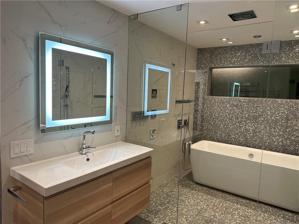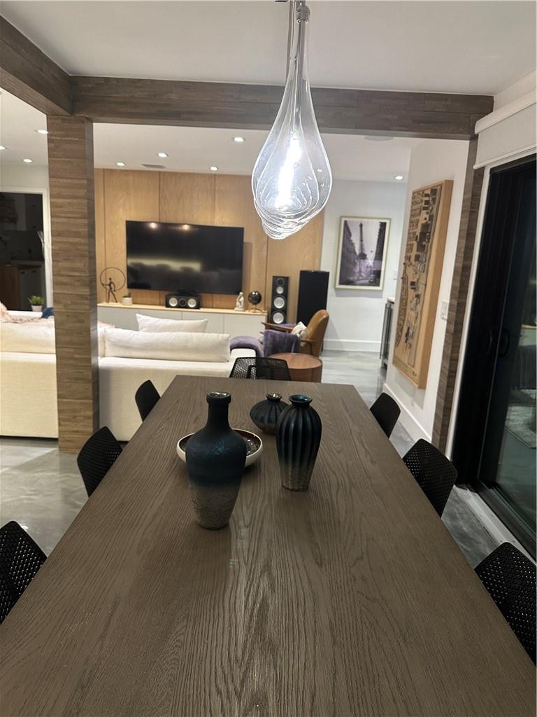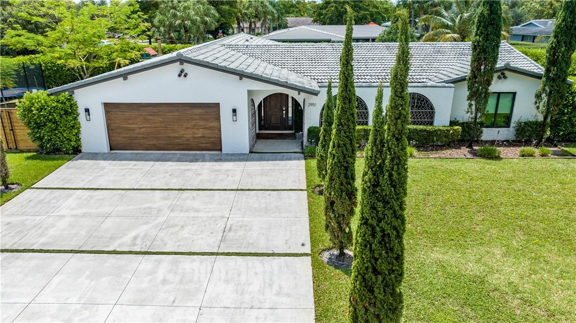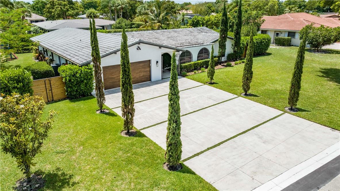 5 bedrooms and 3 baths. Smart control home with automated curtains, lighting, AC, door locks, cameras, garage door and sprinklers. Impact windows and sliders. Beautiful open kitchen with 14 ft Kryon bar and seamless look countertops. Large laundry room with second refrigerator. Master bath with walk-in shower and soaking tub. Rain-head showers from ceiling and body jets. LED mirrors in all baths and wall mounted toilets. Custom tv wall units in living room and primary bedroom. Custom walk-in modular closets. Electrical lines, AC ductwork, plumbing drain lines redone. Custom epoxy floor coating. Recessed LED lighting throughout. Dining area overlooks pool area with stacked sliding doors.