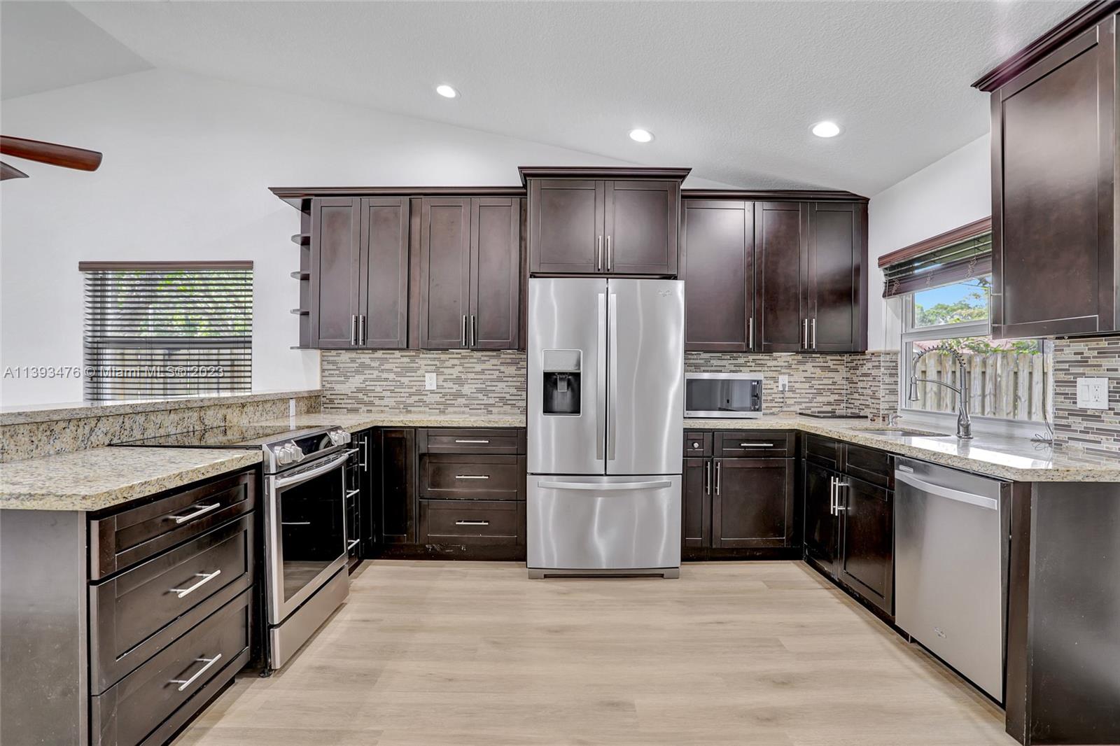 3bed 2bath home, beautifully updated with vaulted ceilings on a corner lot with a spacious fenced and private backyard and a screened patio. Plenty of room for a pool and kids to play. Updated Kitchen cabinets, and granite countertops. Stainless steel appliances. Freshly painted. Updated bathrooms. New luxury Vinyl floors, Central vacuum, Impact windows and doors. Award-winning REME HALO inducts air purifiers. Sprinkler pump. Generator hookup. High hats throughout (LED lighting). Equipped with security cameras and Ring doorbell. Big driveway, and a hidden storage closet on the side of the house. Wonderful schools & walking distance of the many shops, cafes, restaurants and much more! Places of worship nearby. Close to major highways and the hospital. No HOA, no rental or pet restrictions.