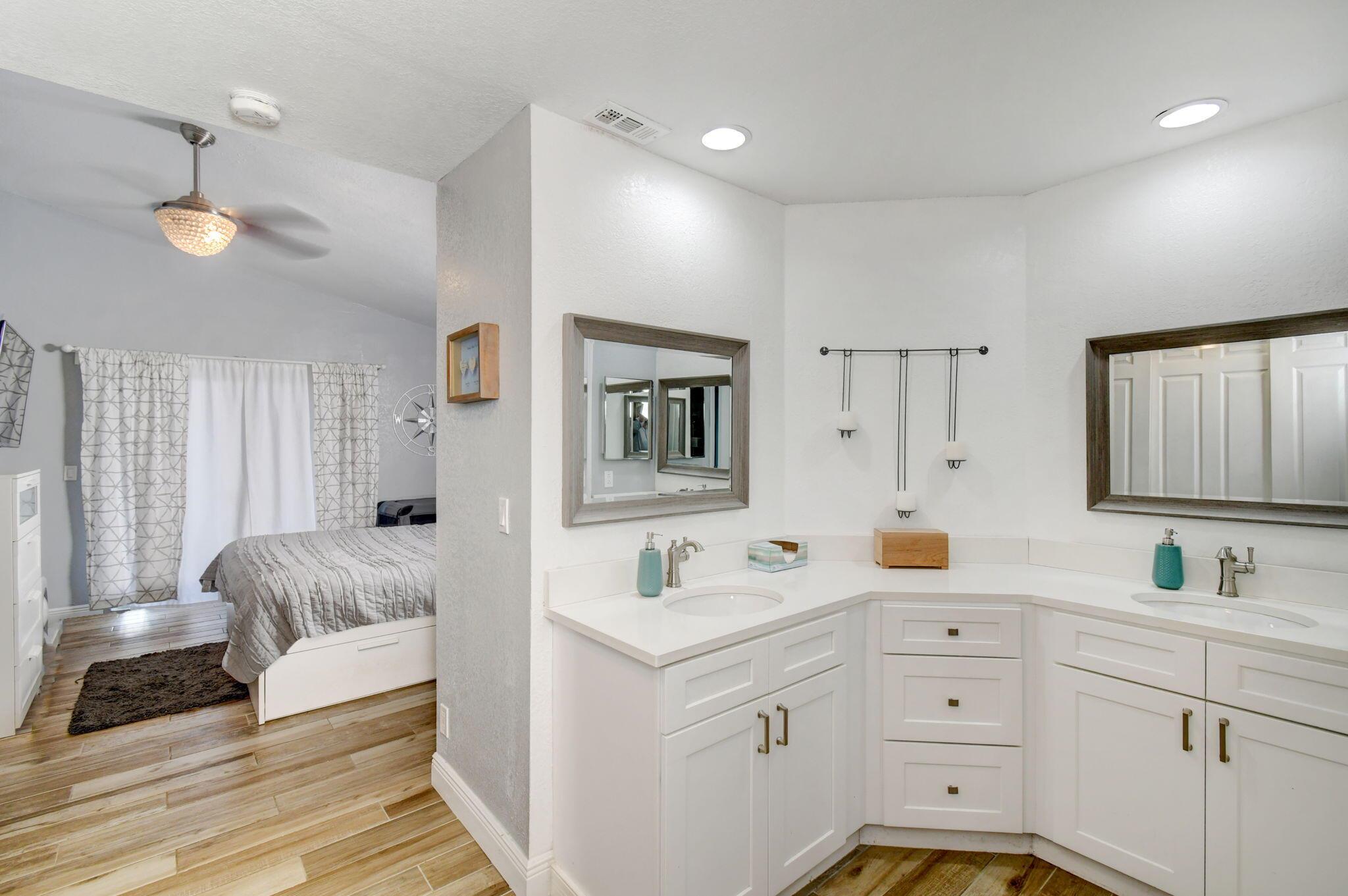 VICTORIA WOODS - You've found the one! This updated, move-in ready, 1,252 sq ft home is everything you have been looking for. With a 24-hour manned gate, this property has it all. From stainless steel appliances, a Nest thermostat, white quartz countertops within the kitchen and bathrooms, and tiled floors throughout. Enjoy entertaining or dining al fresco style under your large covered and screened-in lanai. Bask in the Florida sunshine on your 12 X 10 deck, with plenty of room for outdoor activities in your well-maintained, private fenced-in backyard. The property is adjacent to a common area space providing you with a larger lot feel. The exterior includes a sprinkler system and accordion shutters. Victoria Woods features a multitude of amenities, some of which include: