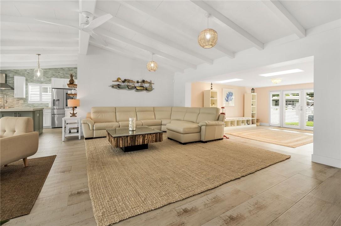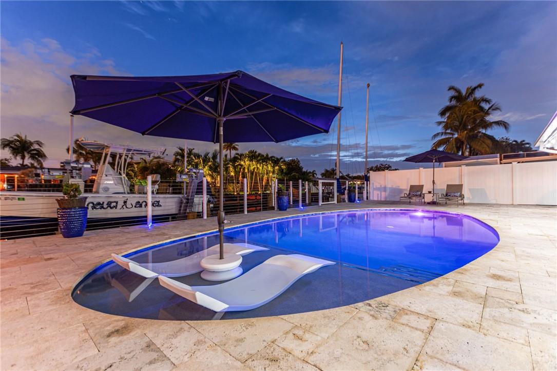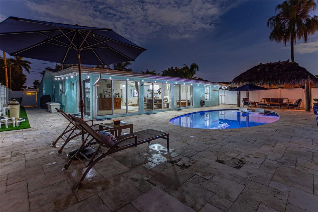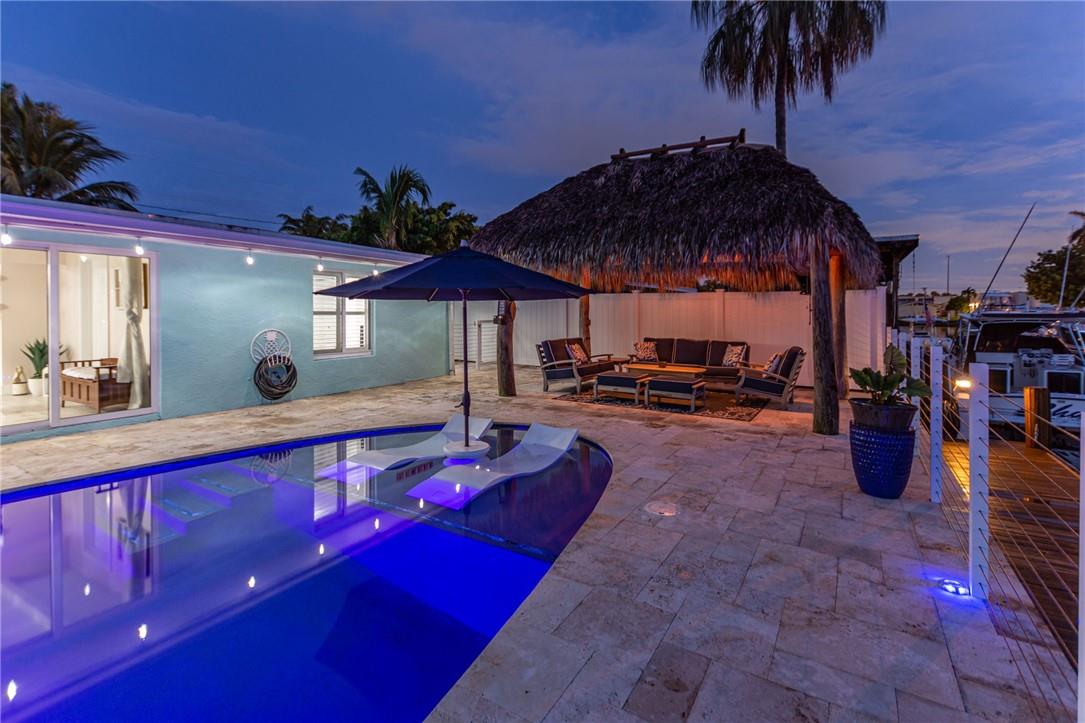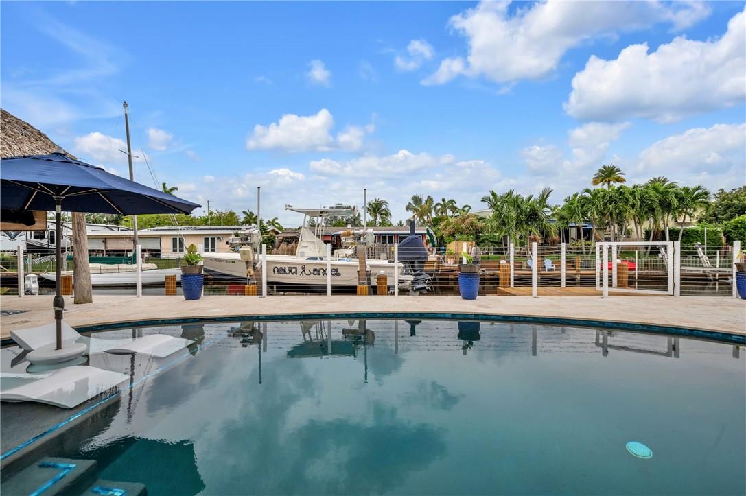 Stunning deep water, ocean access dream home with 65' on canal. You will love the open & spacious living areas, expanded primary suite with walk-around closet & center island, front entry space, fenced front lawn & driveway, 1.5 car garage, 15,000lb boat lift, expansive dockage & more! The list goes on & on. Beautifully renovated in 2019 including new roof, new electric, new PVC pipes, new windows, new kitchen, new bathrooms, new flooring & new lighting. Relax in your crystal blue salt chlorination pool with sun deck entry or chill under your tiki hut. You will be impressed as soon as you enter the home. The impact sliding doors offer great views and lead straight out to the pool & patio area. The open kitchen includes state of the art appliances. No expense has been spared.