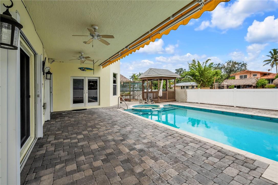 Newer construction 2002 built home in Lauderdale Isles with 65' on ocean access, deep water canal. No fixed bridges to the ocean. Enjoy the comforts & security of this solid built home with metal roof, PVC pipes, 2 car garage, circular driveway, heated pool & jacuzzi. As you enter the home you are greeted with a sprawling floorplan & high vaulted ceilings. You will love the open kitchen to the living areas. Dock your vessel at the 50' dock equipped with 50-amp service, water & cable. These items have been recently replaced; pool pump, hot water heater, a/c, refrigerator, stove & microwave. The spacious primary suite offers a jacuzzi tub, double closets & new flooring. Soak up the sunshine in the heated pool with spa & relax in your covered waterfront gazebo.