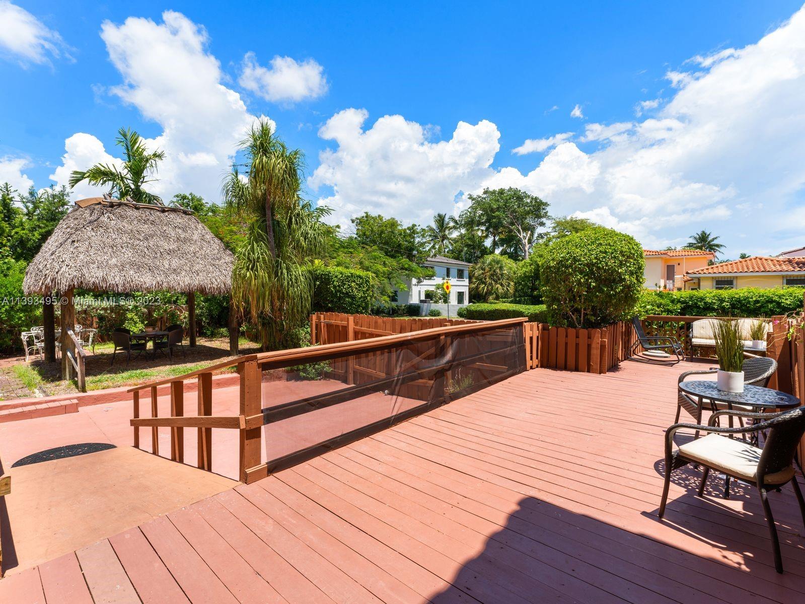 This elegant home is waiting to be restored to its splendor with expansive rooms and natural light throughout. The main living area has a beautiful stone fireplace and formal dining room. Your guests will enjoy a private 1 bed/ 1 bath guest house with private entrance. The outdoor area has an extensive deck and gazebo ideal for entertaining. This property is on a corner lot centrally located and walking distance to shops, restaurants, schools, beaches, houses of worship and a short drive to South Beach, Design District, Wynwood, Brickell, downtown Miami, museums and airport. Additional Upgrades: new roof, impact windows.