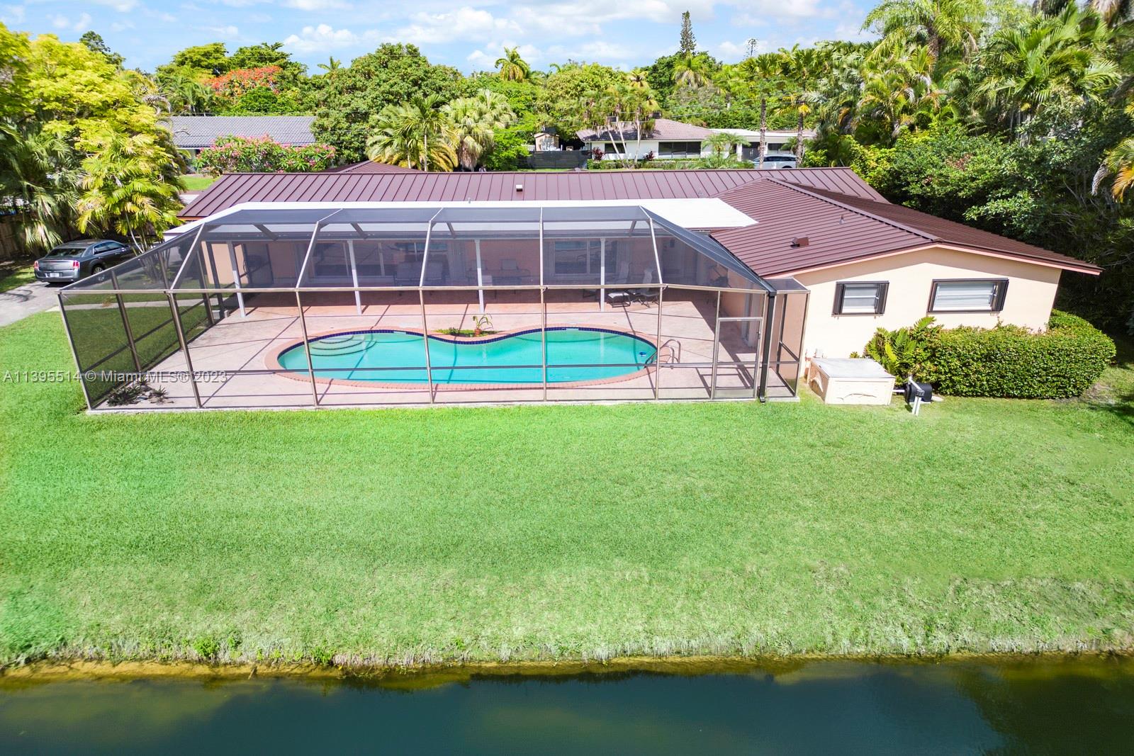 Ideal family home on a great child-friendly and quiet north Pinecrest street on a wide canal. 3 huge bedrooms plus an office off the master. New 2021 metal roof, full accordion shutters, 2020 5-ton AC and more! Nicely updated in some parts including newer bathrooms and somewhat newer kitchen and in great condition and spacious otherwise. Original builder's "model" with oversized rooms (so layout could be adjusted to add a 4th bedroom if needed), big covered pool-patio area, very private lot, small boat ramp, and loads of closet space. Pinecrest elementary.