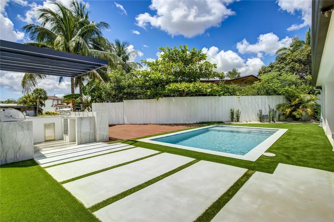 Step into this outstanding 3 bed 2 1/2 bath new construction contemporary design and you will find the highest level of interior finishes with exceptional appointments throughout this masterpiece. The open spacious floor plan boasts a stunning kitchen with high end appliances, one-of-a-kind stone countertops and hand-crafted custom cabinetry. Gather your friends and family and step out to the perfectly designed entertainment center with extraordinary details including a fully equipped lighted summer kitchen, tranquil swimming pool, landscape lighting. Step further down to your own dock with a sitting area suitable for a firepit. No fixed bridges. dock is 20ft, a boat much smaller to fit in the space. This oasis of unique style can be your next home. Feel like you are on vacation forever!
