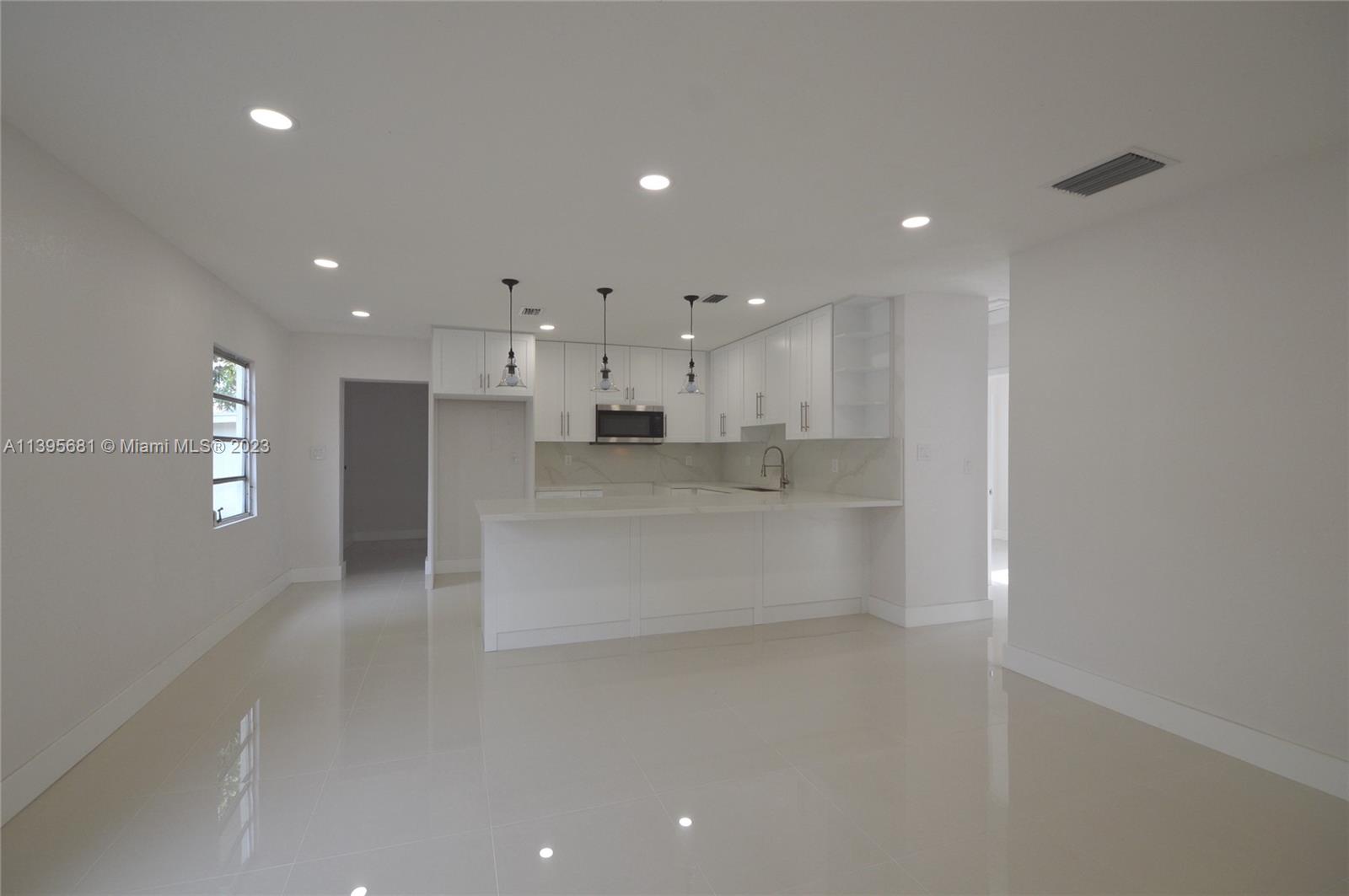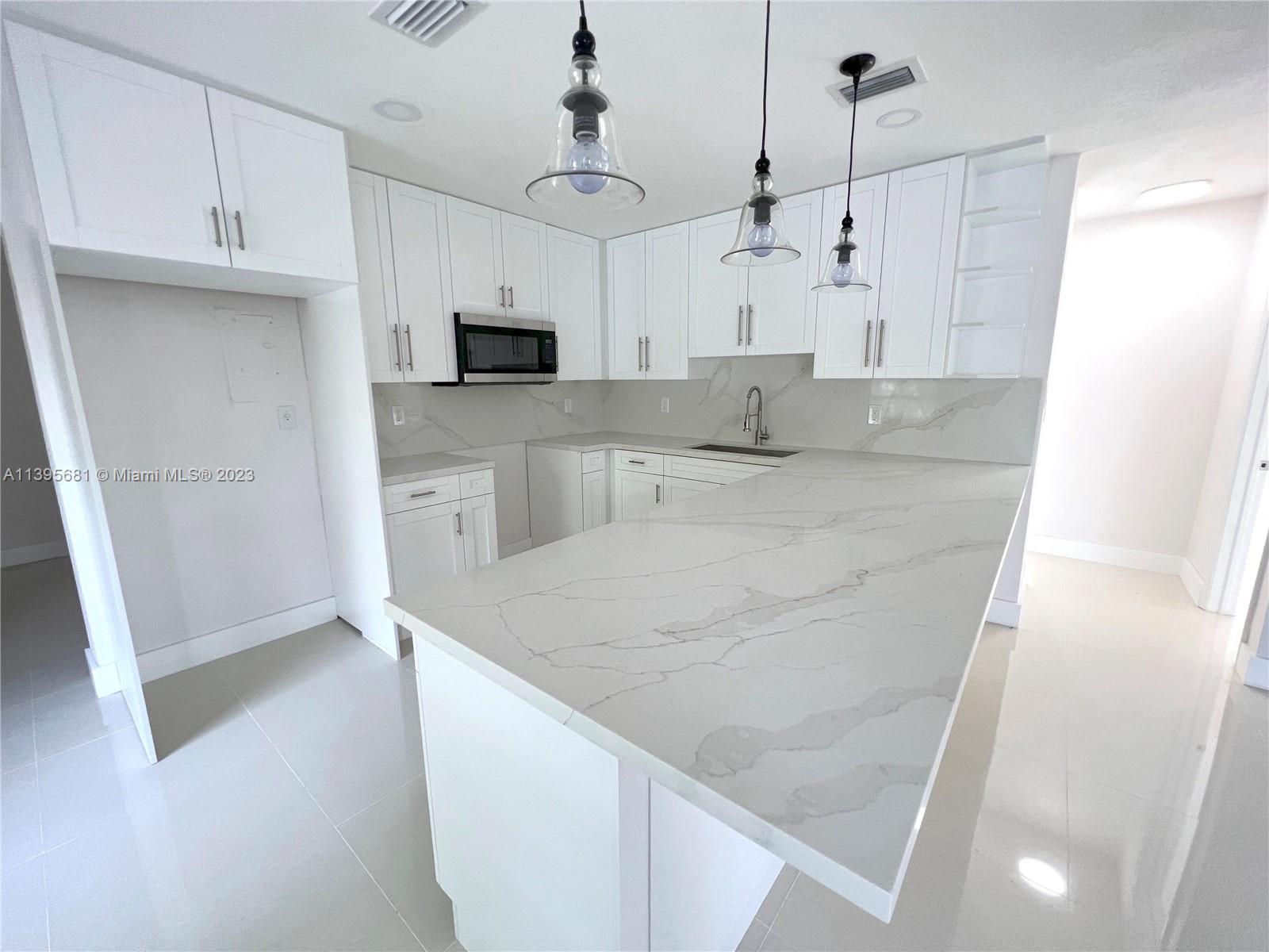 Do not miss this beautifully renovated Hialeah single Family home. With so much to offer this home features a split 4 bedroom/ 2 bathroom floor plan with the option to divide into 2 separate living units. Enter the home and find yourself with an open concept kitchen with tall wood cabinets and a gorgeous calacatta quartz counter top, clean polished porcelain tile throughout, beautiful renovated bathrooms, new doors, baseboards, new flat roof and so much more!!