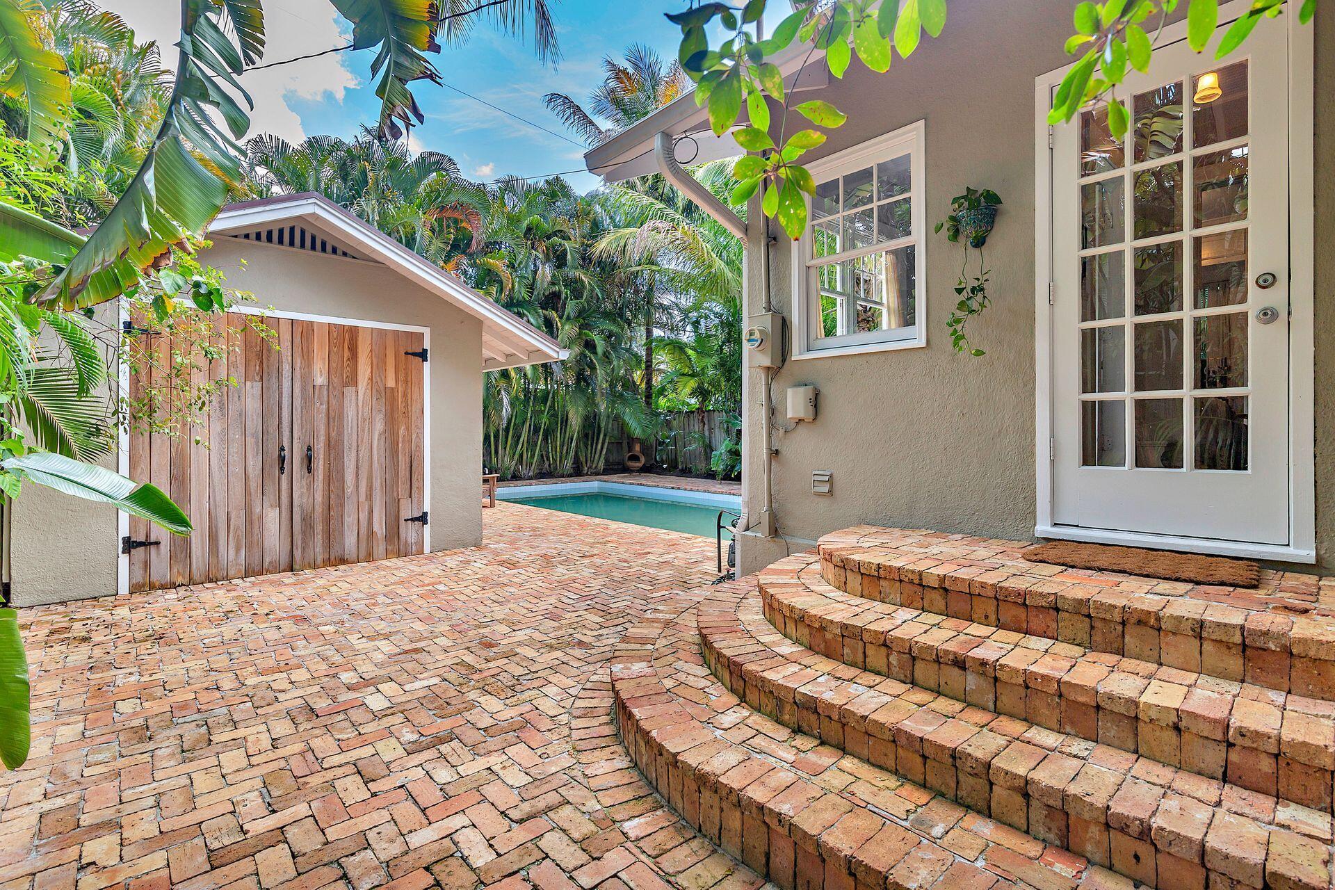 Picture Perfect Prospect Park Home! This 3BR/1.5BTH Florida bungalow sits in the heart of Historic West Palm Beach just off the Intracoastal. Great curb appeal. Large front sunroom entry, office on one side and a den on the other. Original French doors open to the large living & dining rooms.. Original brick fireplace, hardwood floors, high ceilings & crown moldings throughout. The kitchen features butcher block counters, Viking gas range & pecky cypress ceilings. The backyard exemplifies Florida living with a large heated pool surrounded with Chicago brick pavers, cabana bath with outdoor shower. Lush landscaping for the utmost privacy. Charming 1 car garage/potential guest cottage. Close proximity to Palm Beach Island, downtown WPB, Intracoastal, The Square, Antique Row, & PBIA .