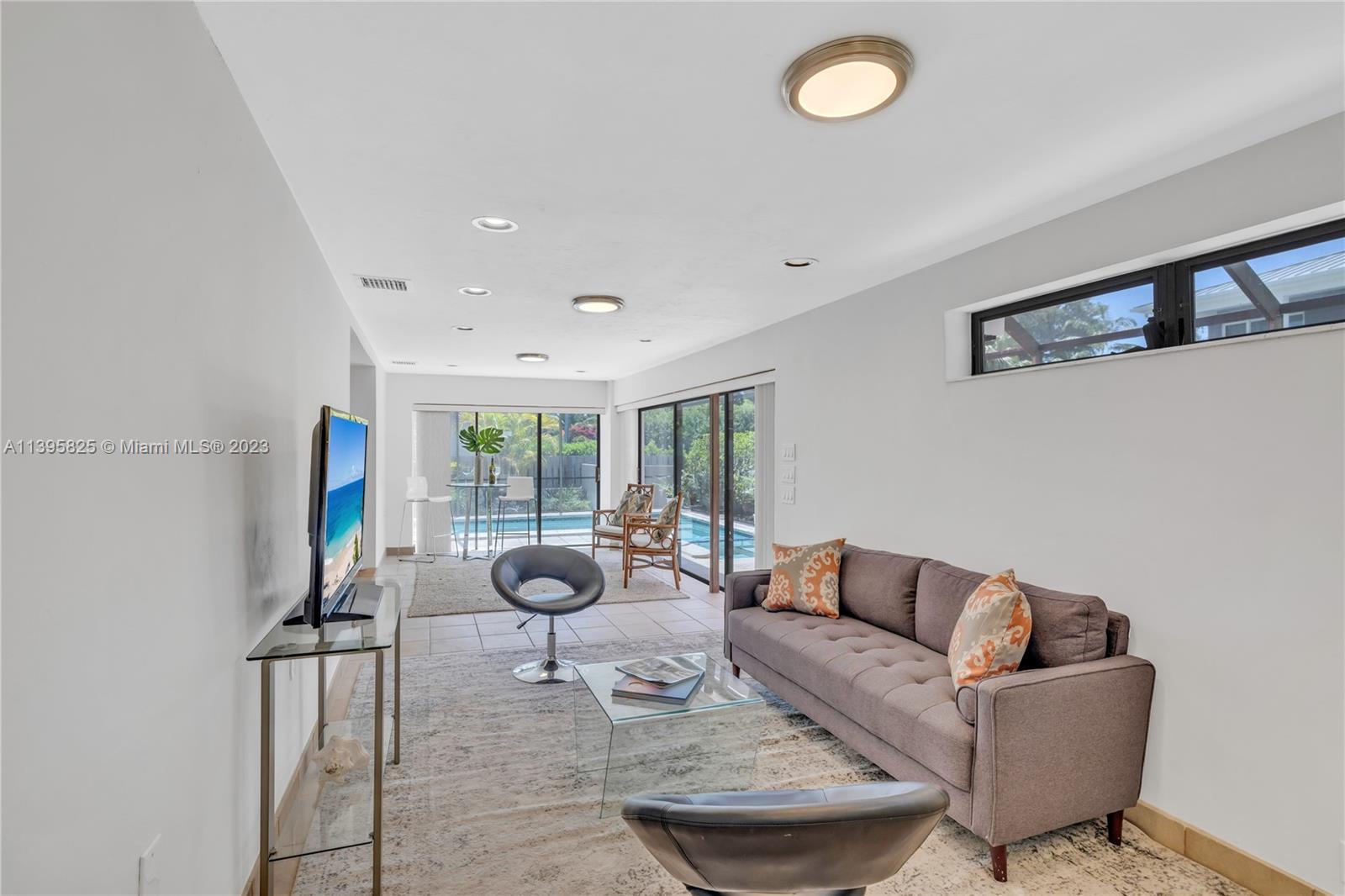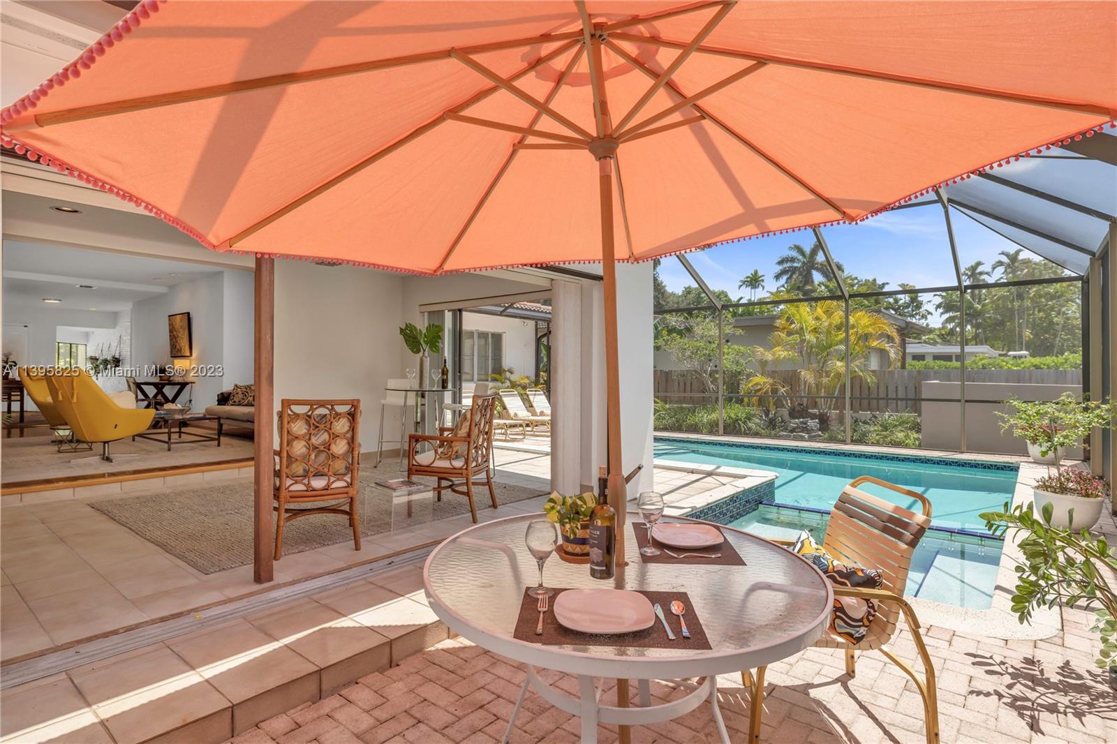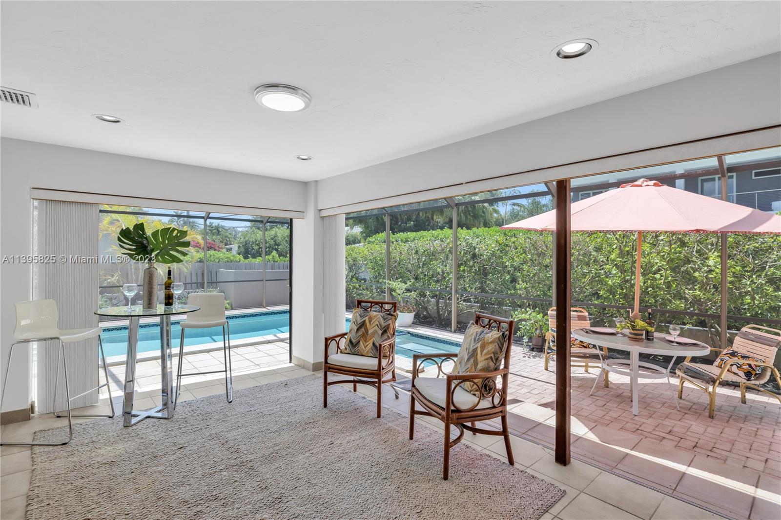 Welcome to Mango Dream! If you’re looking to create your very own dream home in East Miami Shores, come see this sprawling Palm Springs-style mid-century modern pool home, oozing with potential. With 2200 SF of living space (not including the jumbo two-car garage), there’s so much room to entertain and relax. A majestic mango tree welcomes you as you enter into a grand foyer with its own private solarium, leading to multiple open living areas, formal dining, kitchen and expansive 33’ long Florida room perfect as media room, lounge, home office, or all of the above, overlooking the sparkling screened pool. Three large bedrooms with great closet space are tucked away from social areas for extra privacy. Ripe with opportunity in a non-flood zone in Miami Shores’ most prestigious neighborhood!