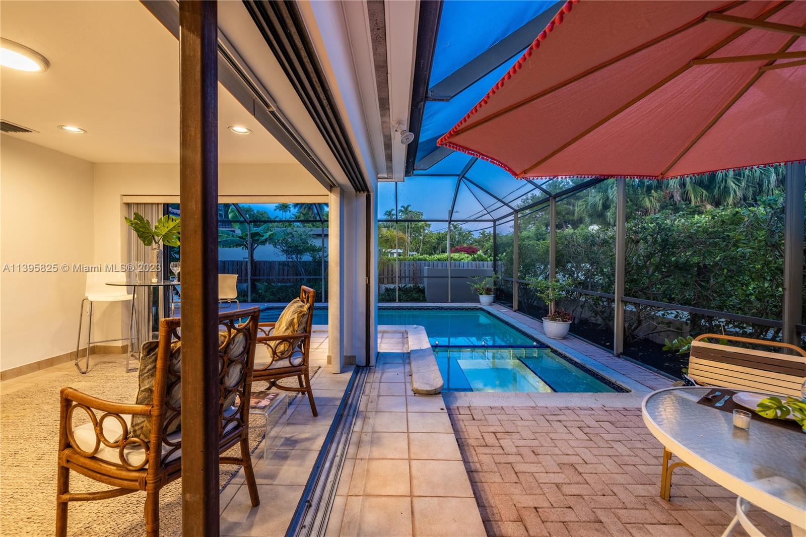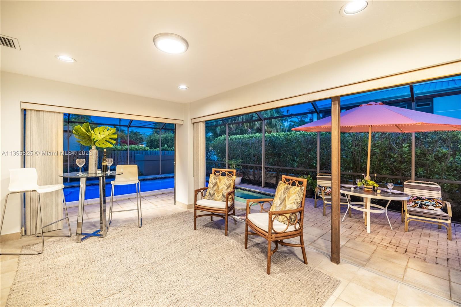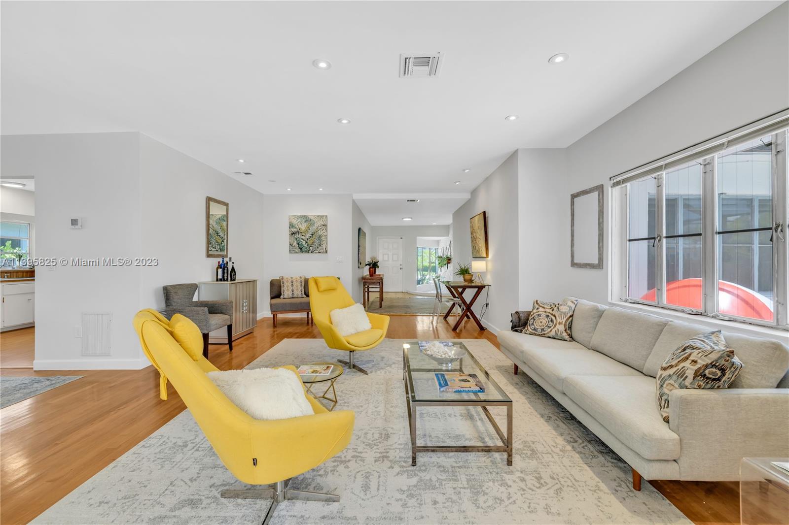 Welcome to Mango Dream! If you’re looking to create your very own dream home in East Miami Shores, come see this sprawling Palm Springs-style mid-century modern pool home, oozing with potential. With 2200 SF of living space (not including the jumbo two-car garage), there’s so much room to entertain and relax. A majestic mango tree welcomes you as you enter into a grand foyer with its own private solarium, leading to multiple open living areas, formal dining, kitchen and expansive 33’ long Florida room perfect as media room, lounge, home office, or all of the above, overlooking the sparkling screened pool. Three large bedrooms with great closet space are tucked away from social areas for extra privacy. Ripe with opportunity in a non-flood zone in Miami Shores’ most prestigious neighborhood!