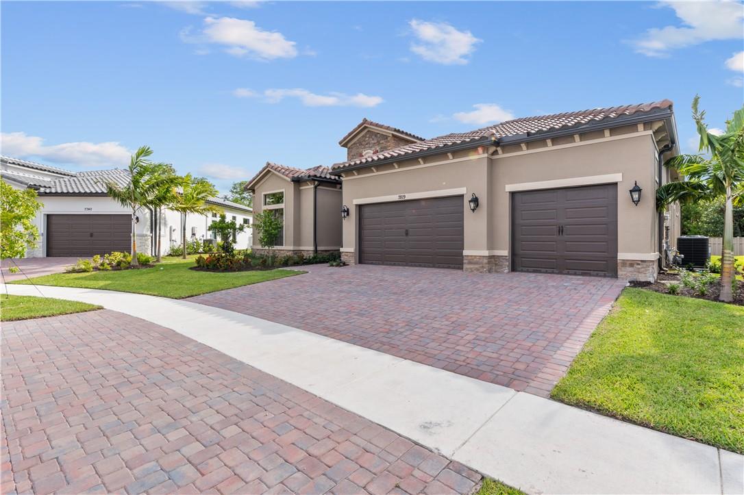 Exquisite Islamorada Model w/$300k plus in upgrades/options. Never lived in, new construction home has 3 bedrooms plus den/office, with 3.5 bathrooms, 3 car garage (epoxy flooring) and is located in the gated, resort style community of THE FALLS AT PARKLAND. This luxurious home features a triple split floor plan w/a great room that expands into the kitchen and breakfast area. Kitchen has a large cooking island, gas stove, butlers pantry. Spacious primary bedroom, large shower, dual sinks and a massive walk in closet. Guest suite has its own entrance. Private backyard has a covered lanai w/pavers, room for a pool. Grand clubhouse (24,000 sqft) includes: theatre, card rooms, ballroom, lounge, cafe, fitness center, resort pool/spa, tennis, and so much more. Custom window treatments included.