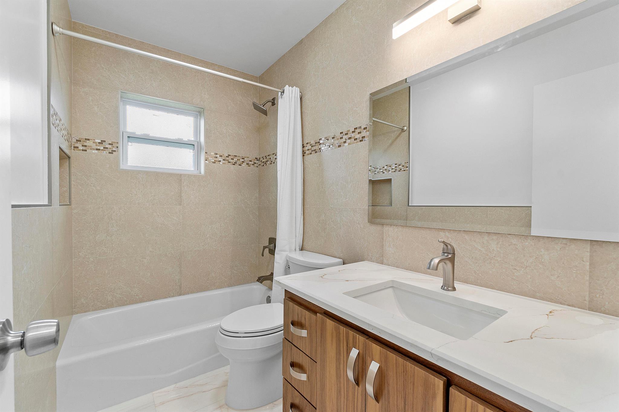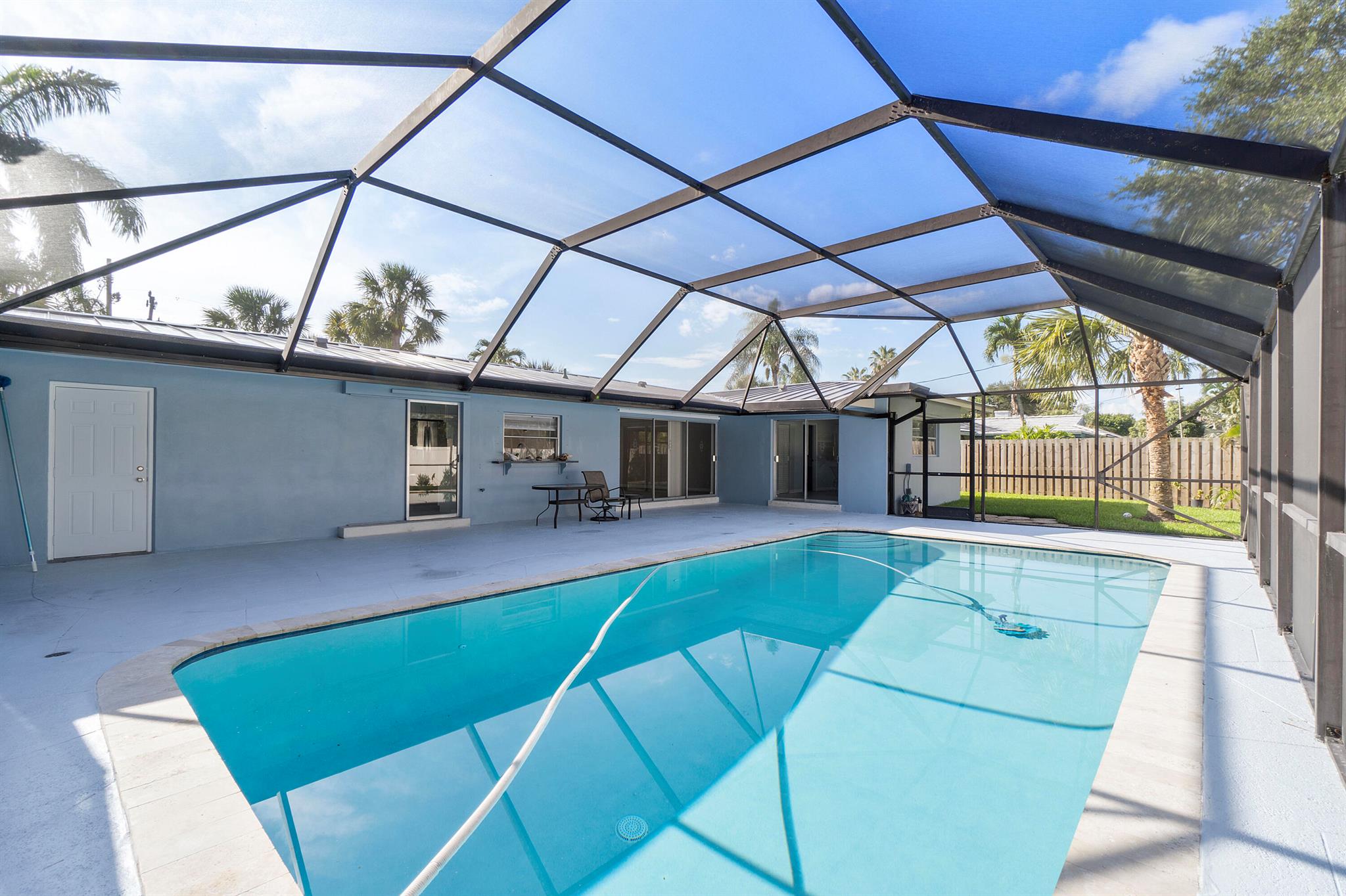 Welcome to this stunning fully remodeled 3 bedroom 2 bathroom house nestled in the highly sought-after school district in East Boca Raton. As you approach the house, you are greeted by a beautifully landscaped front yard. The exterior has fresh paint and a brand new metal roof. This home has been completely renovated, providing a contemporary and welcoming atmosphere. Beautifully landscaped private fenced in backyard has a large screened in pool area and it is perfect for entertaining or relaxation. Close to I-95, Mizner Park, Boca Beach, Town Center mall, places of worship, shopping. Quiet street with friendly neighbors and no through traffic and no HOA!