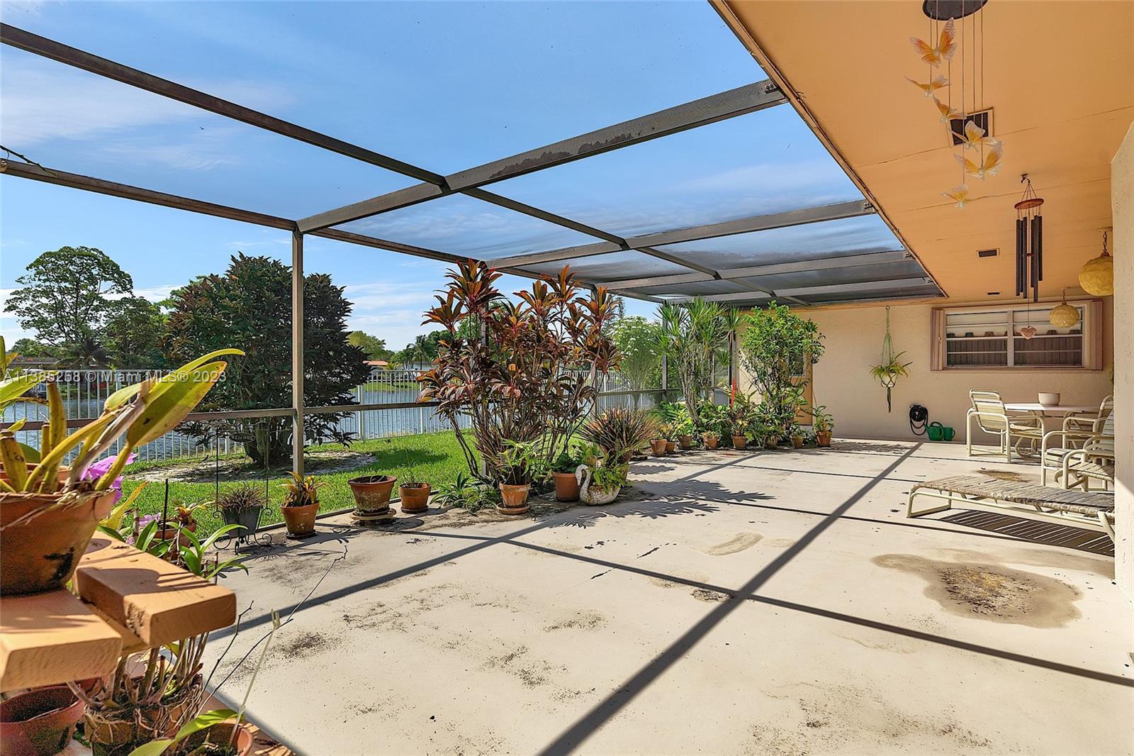 Enter this lovely home as the lake reaches out to greet you. A wonderful house sitting on an oversized waterfront lot. Sit on your covered lanai with an extended patio that sprawls the width of the home. Mature manicured landscaping serviced by your lake fed sprinkler system. Beautiful view. Enjoy Florida living knowing you have the security of hurricane shutters , hurricane grade garage door and a generator that will service the ENTIRE HOME Generator under warranty ,serviced by people’s natural gas. AC THREE YEARS OLD. ROOF ONLY 9 YEARS. SPLIT FLOOR PLAN. Open style Florida room compliments an eat in kitchen. Formal dining and oversized living room. Large bedrooms with extra storage. Two + car garage. This house iwaits for a family to call this home. It really is a special house